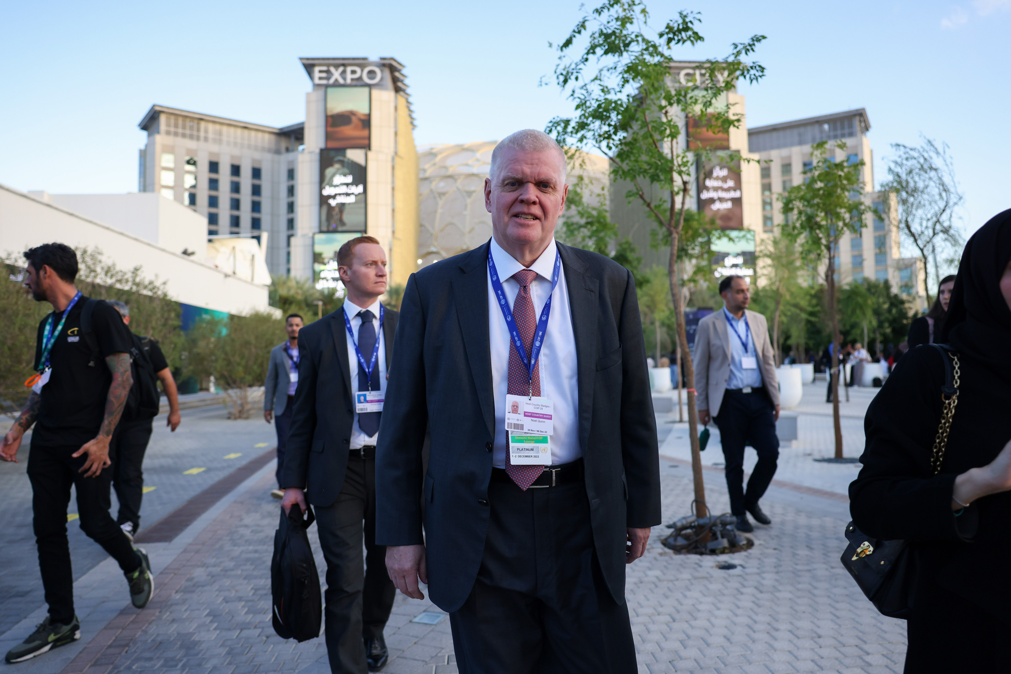 Noel Quinn, HSBC Holdings Plc首席执行官,走过迪拜博览城的蓝区。
