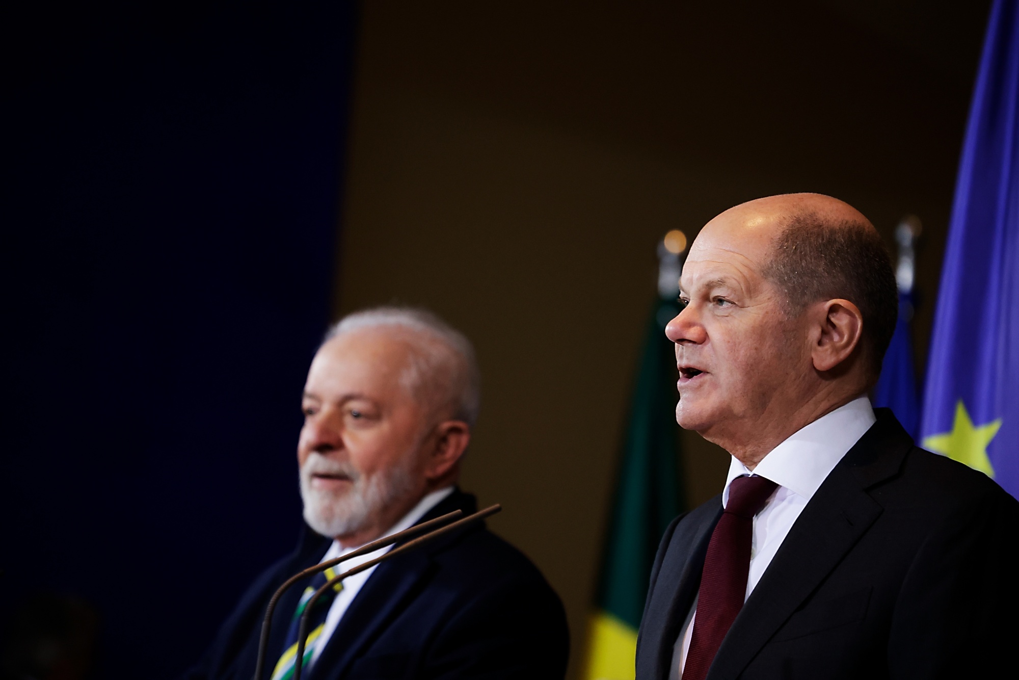 在柏林举行会谈后的联合新闻发布会上,德国总理奥拉夫·肖尔茨和巴西总统路易斯·伊纳西奥·卢拉·达席尔瓦表示,他们仍然希望欧盟-南共市场(Mercosur)协议能够很快达成。