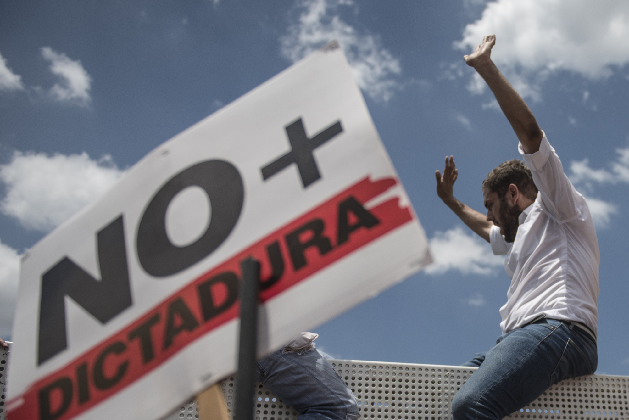 Juan Requesens, National Assembly的副议长,在第二天的抗议活动中坐在加拉加斯,委内瑞拉的国民警卫队路障上,当时最高法院撤销了其扣押反对派领导的国会的权力,时间是2017年4月1日星期六。摄影师:Carlos Becerra/Bloomberg“到目前为止,统一平台和拜登政府之间似乎有着稳定的沟通,”拉姆齐说,“但重要的是要确保委内瑞拉政权清楚地知道自己承诺要做什么,并且这一点得到了白宫和委内瑞拉反对派的强化。”