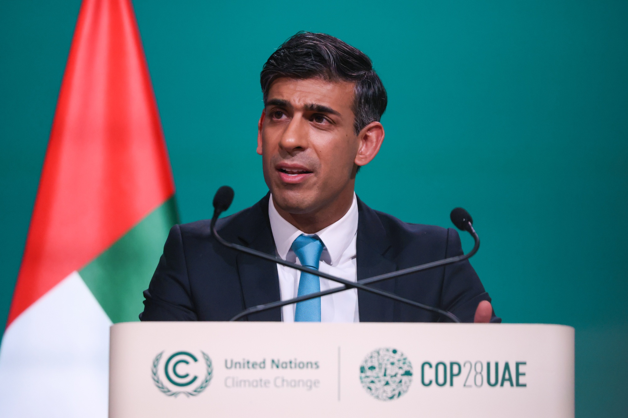 拉希·苏纳克上周在迪拜博览城举行的COP28气候大会上发言