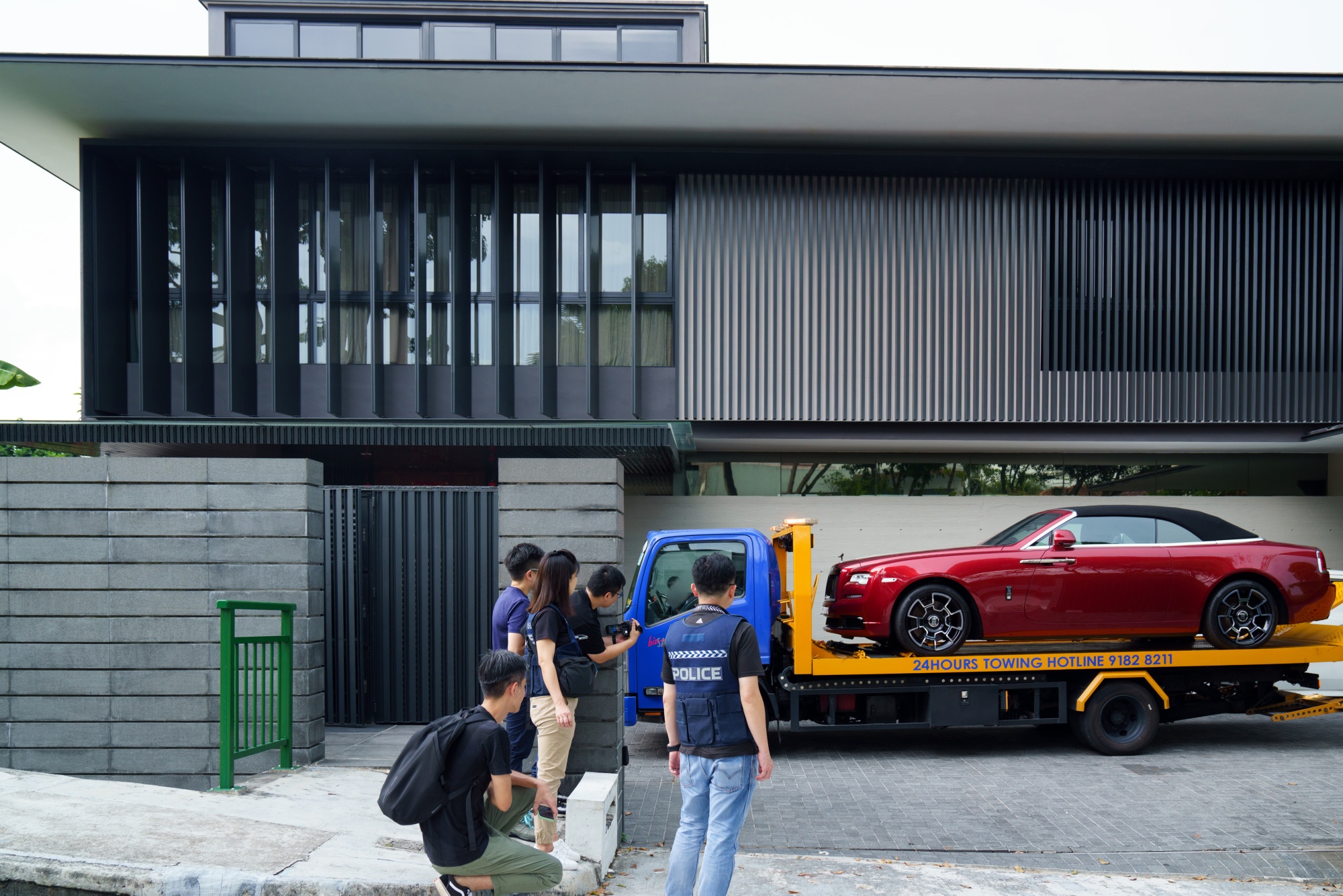 警方在新加坡一名涉嫌洗钱案的嫌疑人住所查获的一辆劳斯莱斯汽车。摄影师:Ore Huiying/Bloomberg打击行动甚至对当地经济产生影响。豪宅交易放缓。在私人圣淘沙高尔夫俱乐部,会员费已飙升至60多万美元,包括苏海津在内的该案的五名嫌疑人已被列入违约名单。