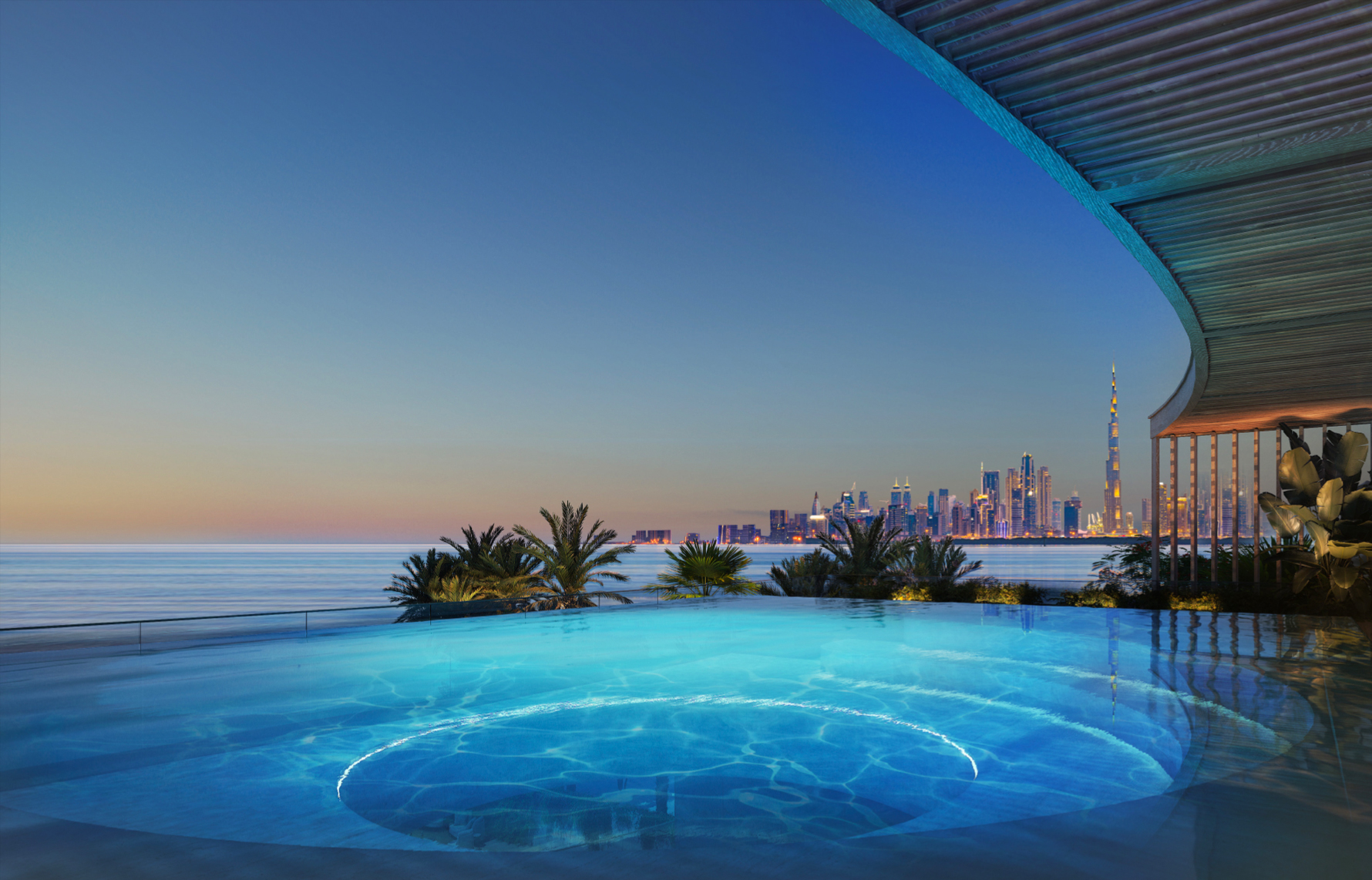 宫殿豪华生活在这个岛上的3万平方英尺的豪宅之一拥有六间卧室、私人海滩通道、七辆汽车展厅以及一个水疗中心、员工宿舍和一个屋顶泳池,可以俯瞰迪拜市中心的全景。