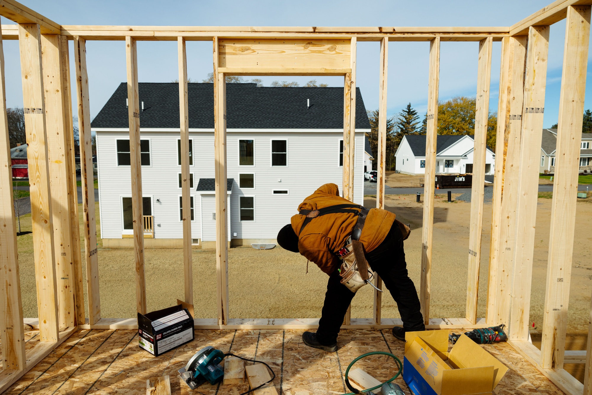 一名工人在美国纽约州劳登维尔建造房屋。摄影师:Angus Mordant/Bloomberg纽约市、长岛和韦斯切斯特县的工人很快将获得至少每小时16美元的工资,比目前高出1美元,因为该州将加入其他21个州提高最低工资标准的行列。