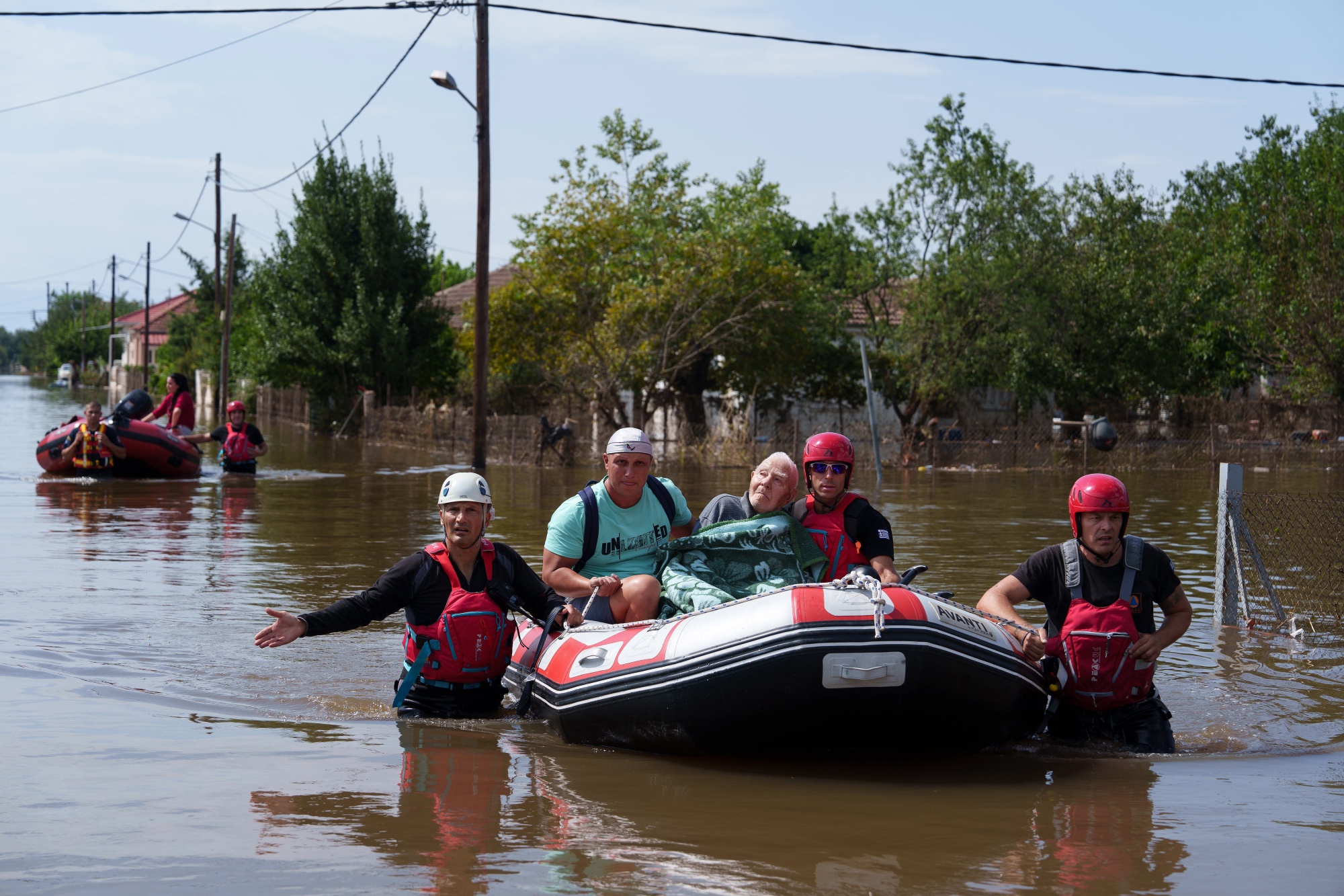 帕拉马斯,希腊卡尔迪察地区的被救出的居民,他们的房屋被洪水淹没,发生在9月。