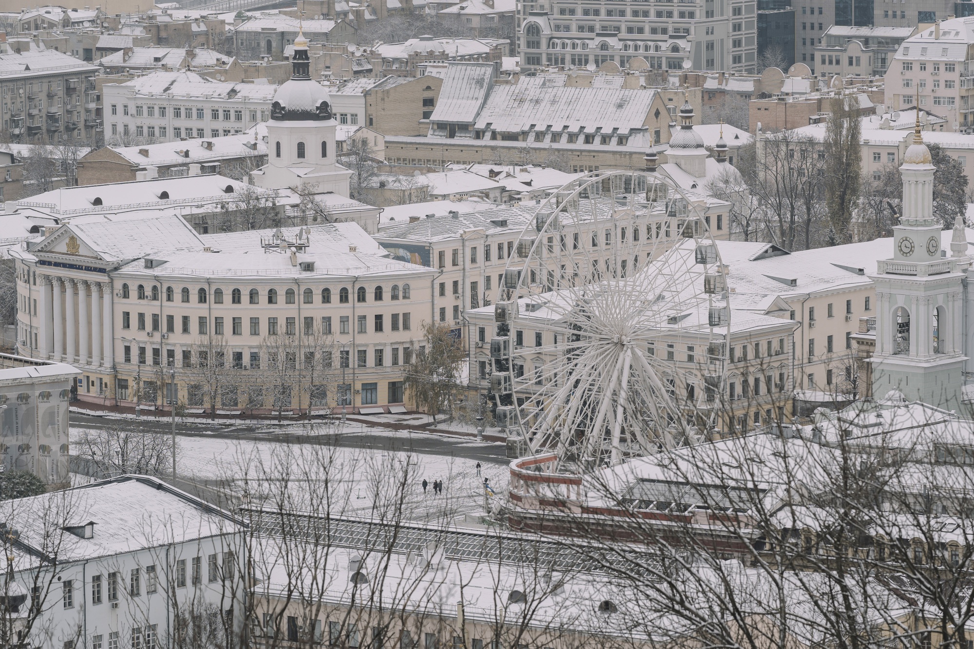 乌克兰基辅波迪尔区降雪后地面一片白茫茫。摄影师:Andrew Kravchenko/Bloomberg### 5. 这将走向何方?