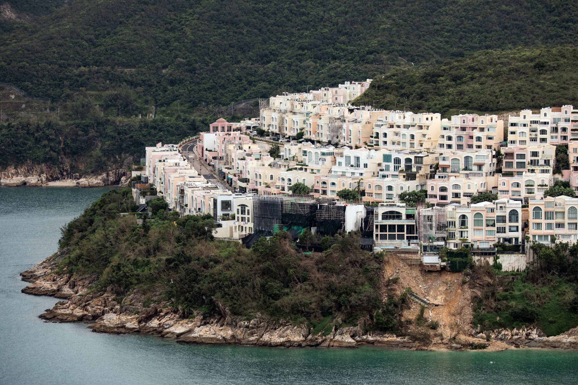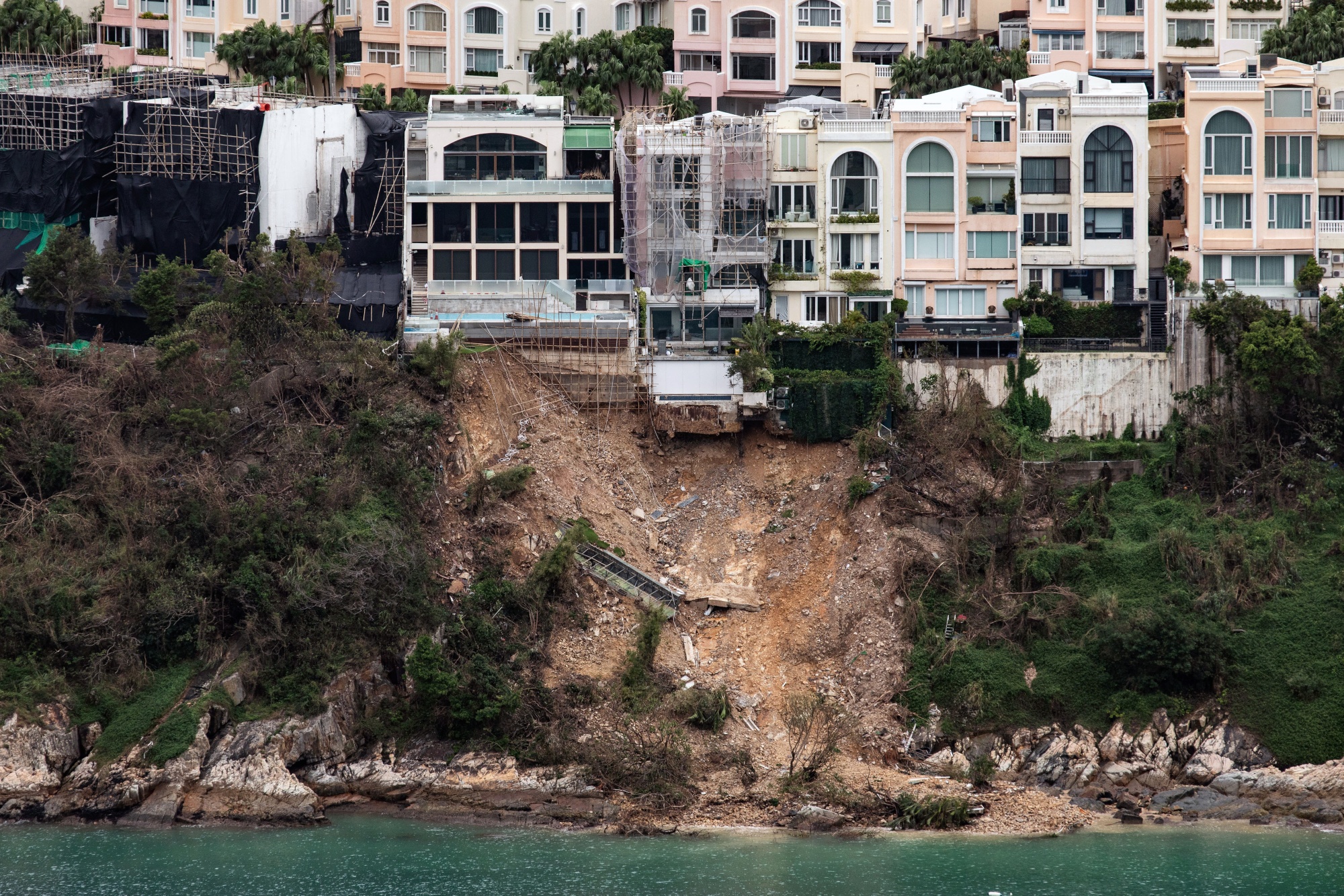 摄影师:Anthony Kwan/Bloomberg在九月的一场风暴中,香港迎来了一个世纪以来最大的降雨量,数吨的泥土、岩石和碎片滚落到了红山半岛下的海中,这里是岛屿南部一簇价值超过1000万美元的现代主义联排别墅。山体滑坡在山坡上留下了一道伤痕,暴露了几栋房屋基础下挖掘的未经授权的地下室。政府派遣检查员前往这个独家区域,很快发现了48处存在违建的房产,其中有22处侵占了城市土地。