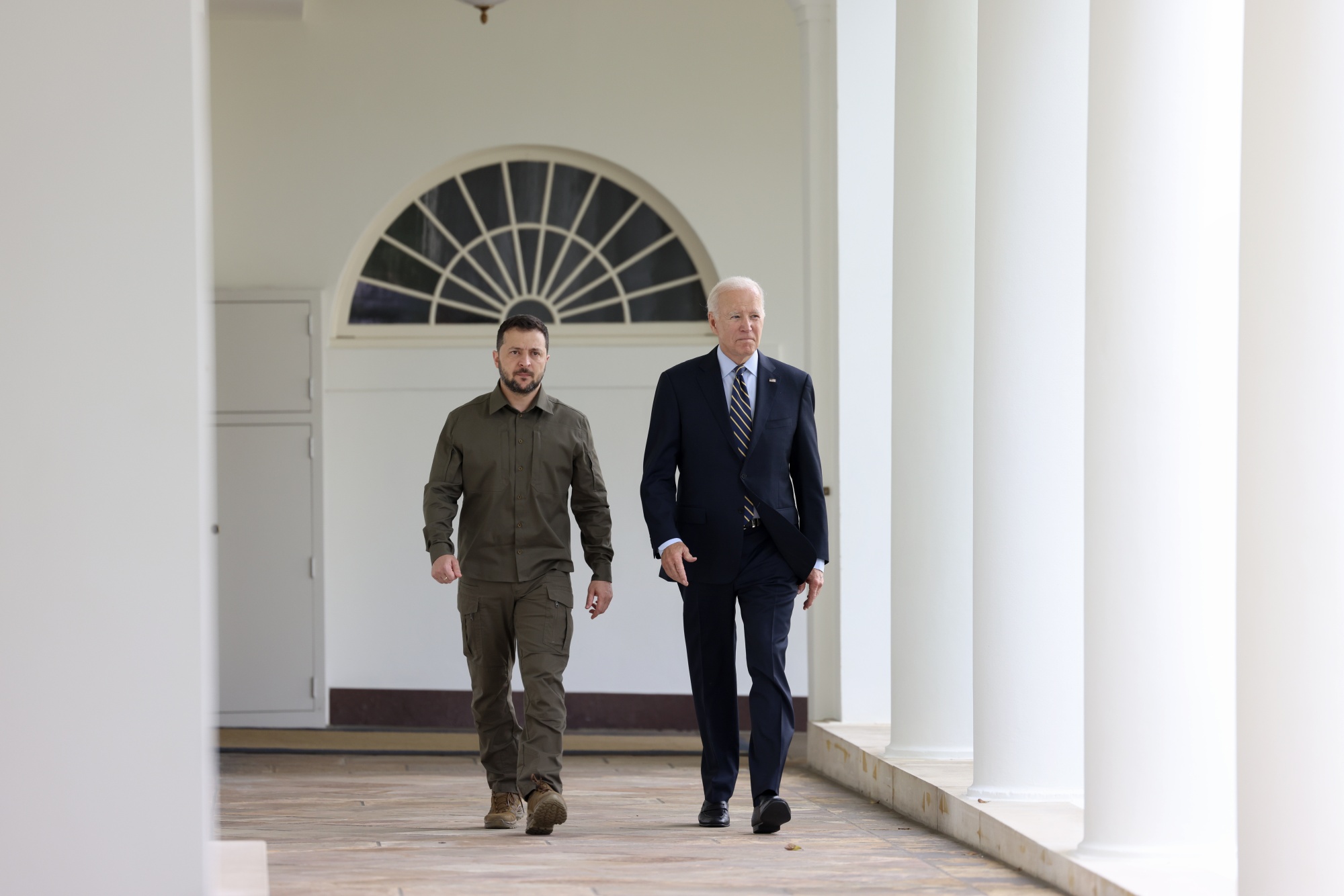 美国总统乔·拜登和乌克兰总统沃洛迪米尔·泽连斯基,左,于2023年9月21日在华盛顿特区。