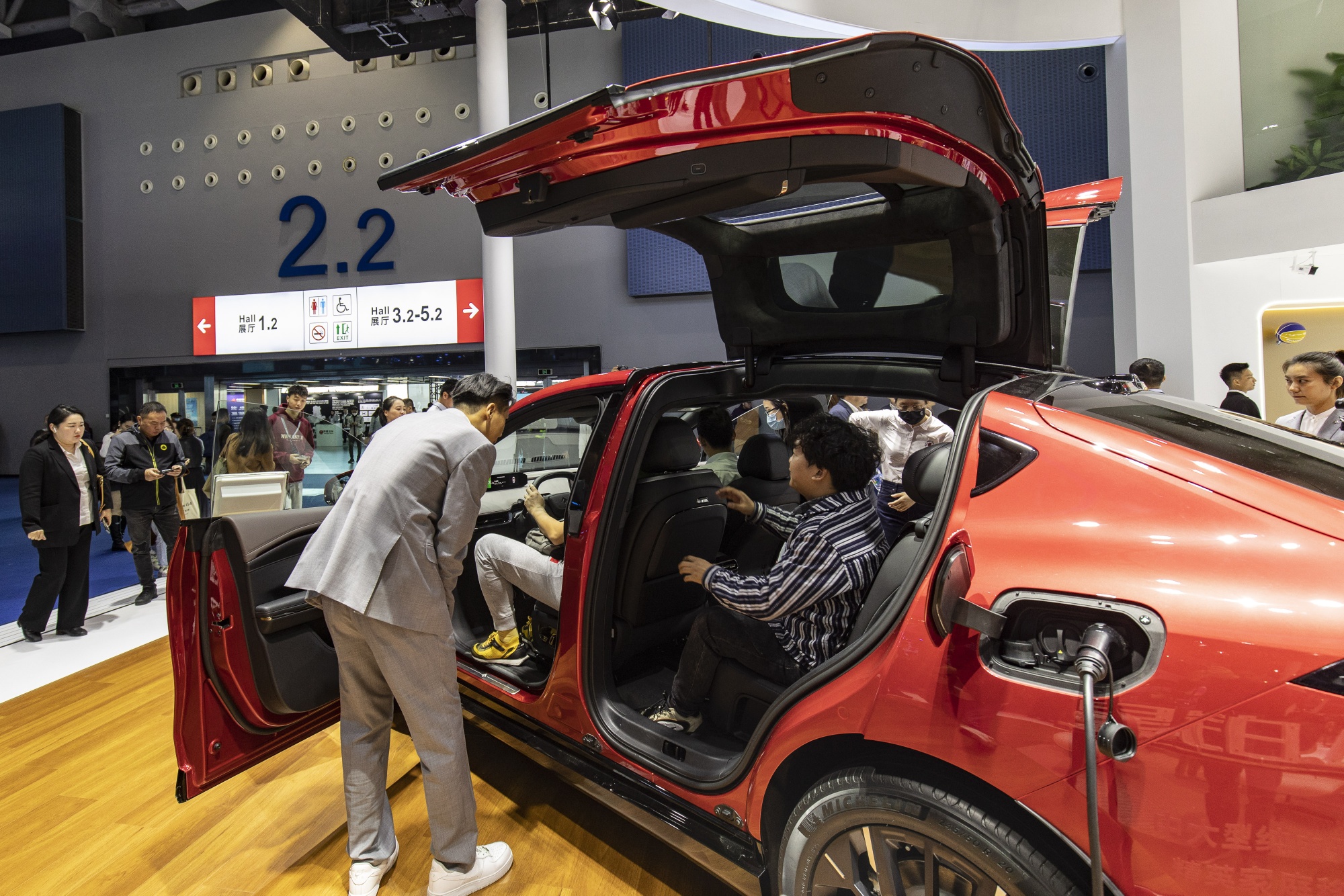 11月17日在广州车展上的一辆Aion Hyper HT车辆。摄影师:Qilai Shen/Bloomberg### 全球必读