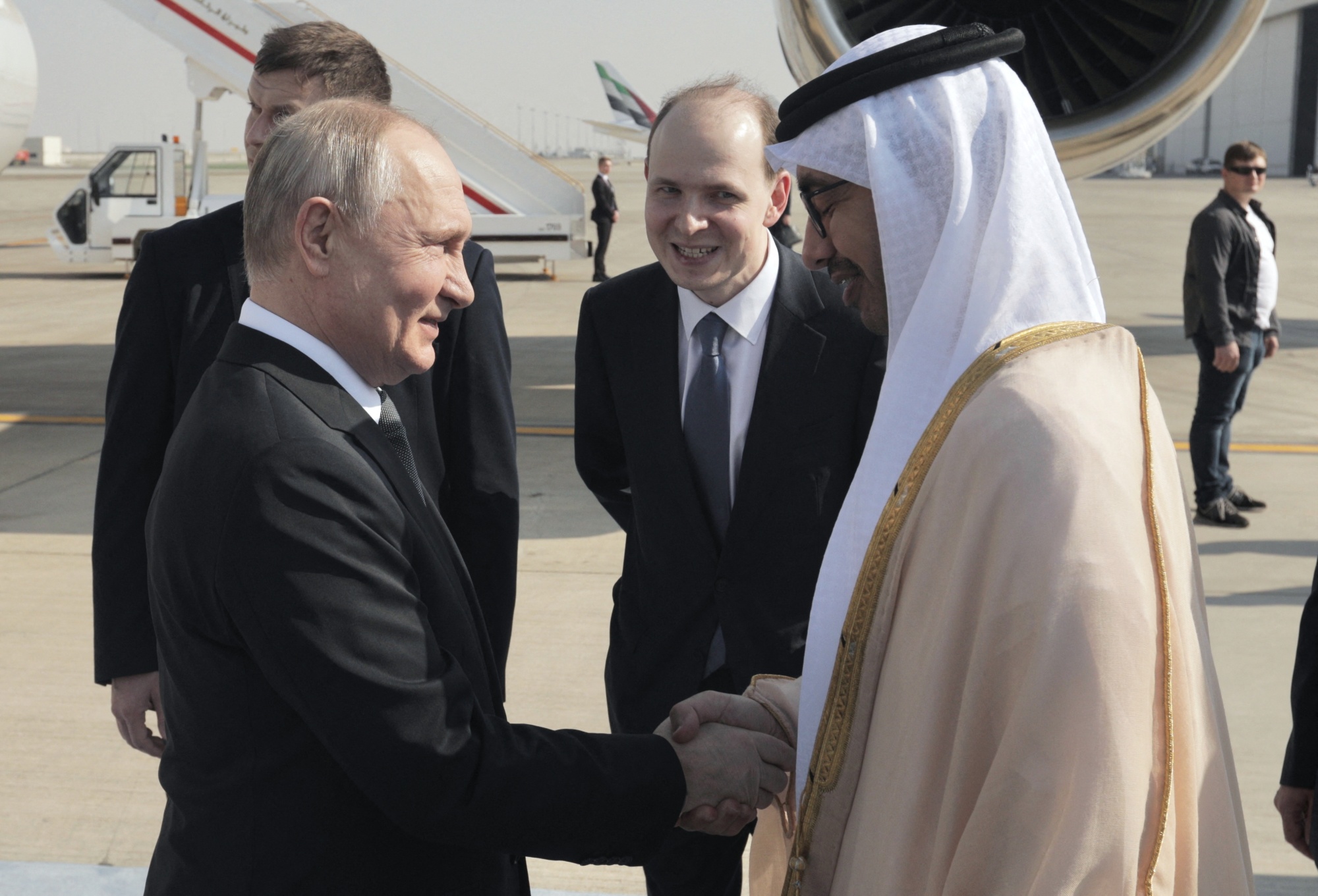 据俄罗斯国家电视台播出的报道,普京在周三抵达阿布扎比时受到了该国高级官员的迎接。