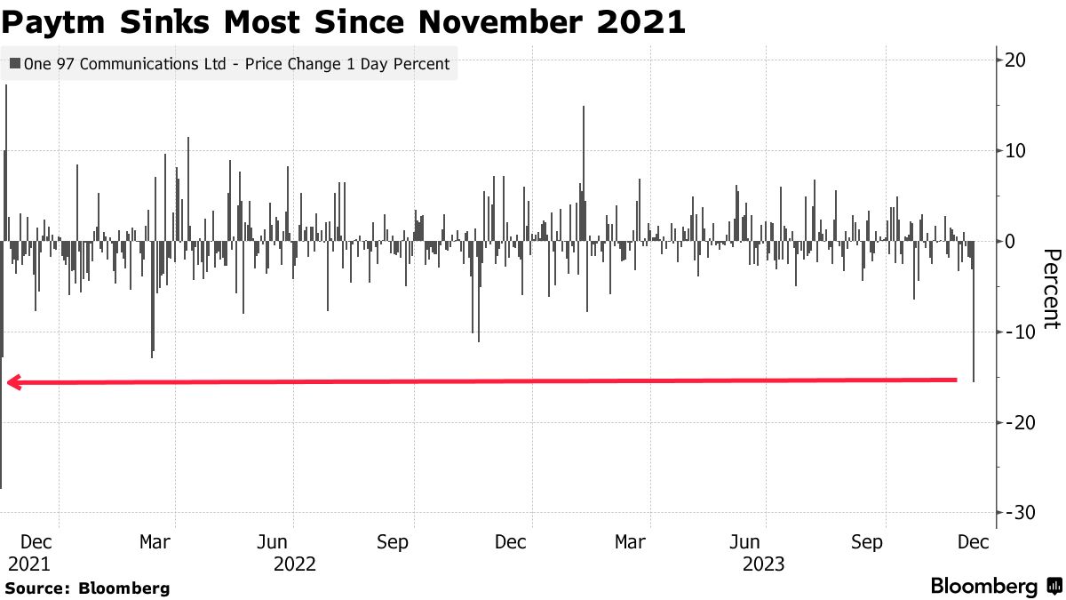 Paytm计划减少小额贷款,股价下跌 - 彭博社