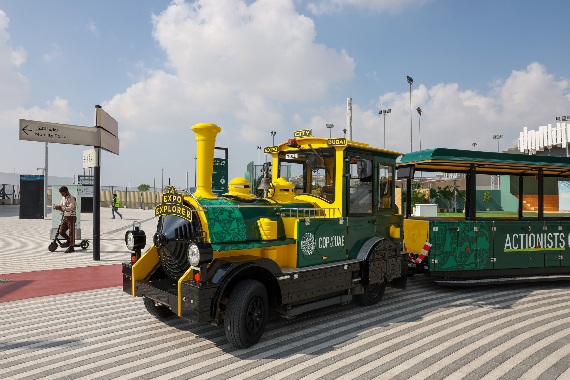 博览会探险者压缩空气列车在绿色区域入口外等待乘客。摄影师:安妮·萨卡布/彭博社COP29 —— 由于与欧盟和俄罗斯的分歧,仍未找到主办方 —— 可能默认在德国波恩市举行,这里是联合国气候变化框架公约的总部所在地,但据知情人士称,他们已经礼貌地拒绝了,因为会议规模太大。此外,人们还担心COP30在巴西亚马逊雨林的贝伦市举行会带来什么影响。