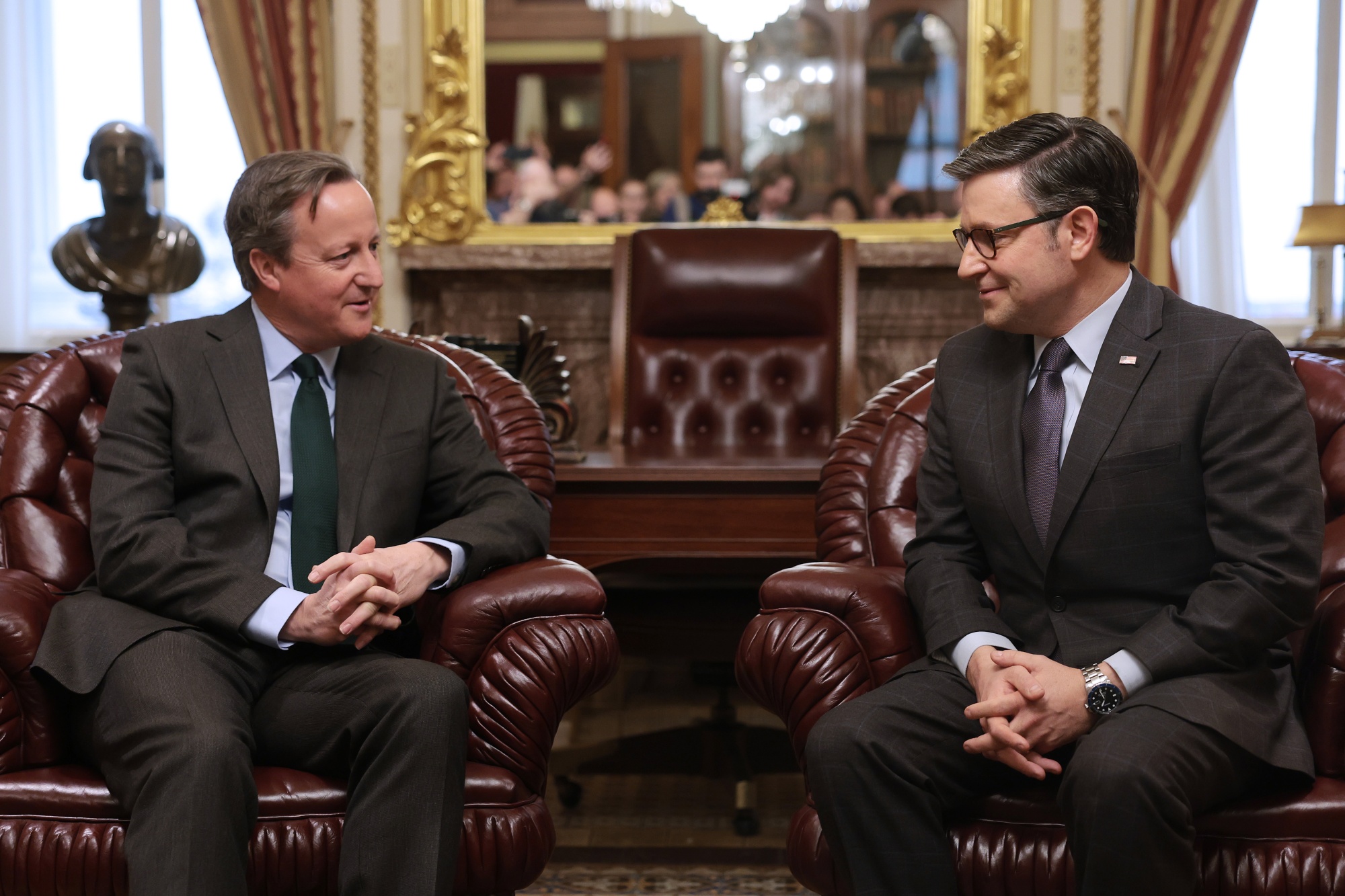 迈克·约翰逊于12月6日在美国国会与大卫·卡梅伦会面。