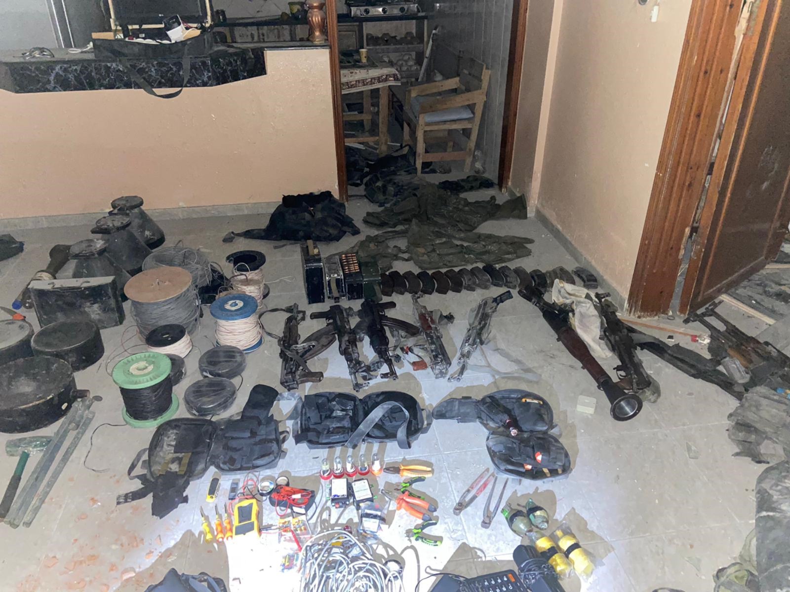 以色列国防军提供的在加沙北部贝特哈努恩一所房屋中发现的武器和战斗装备的照片。来源:以色列国防军哈马斯用来将其激进分子从一个地方移动到另一个地方并储存武器的隧道,大多位于人口稠密的地区,阿米特使用地图进行说明。
