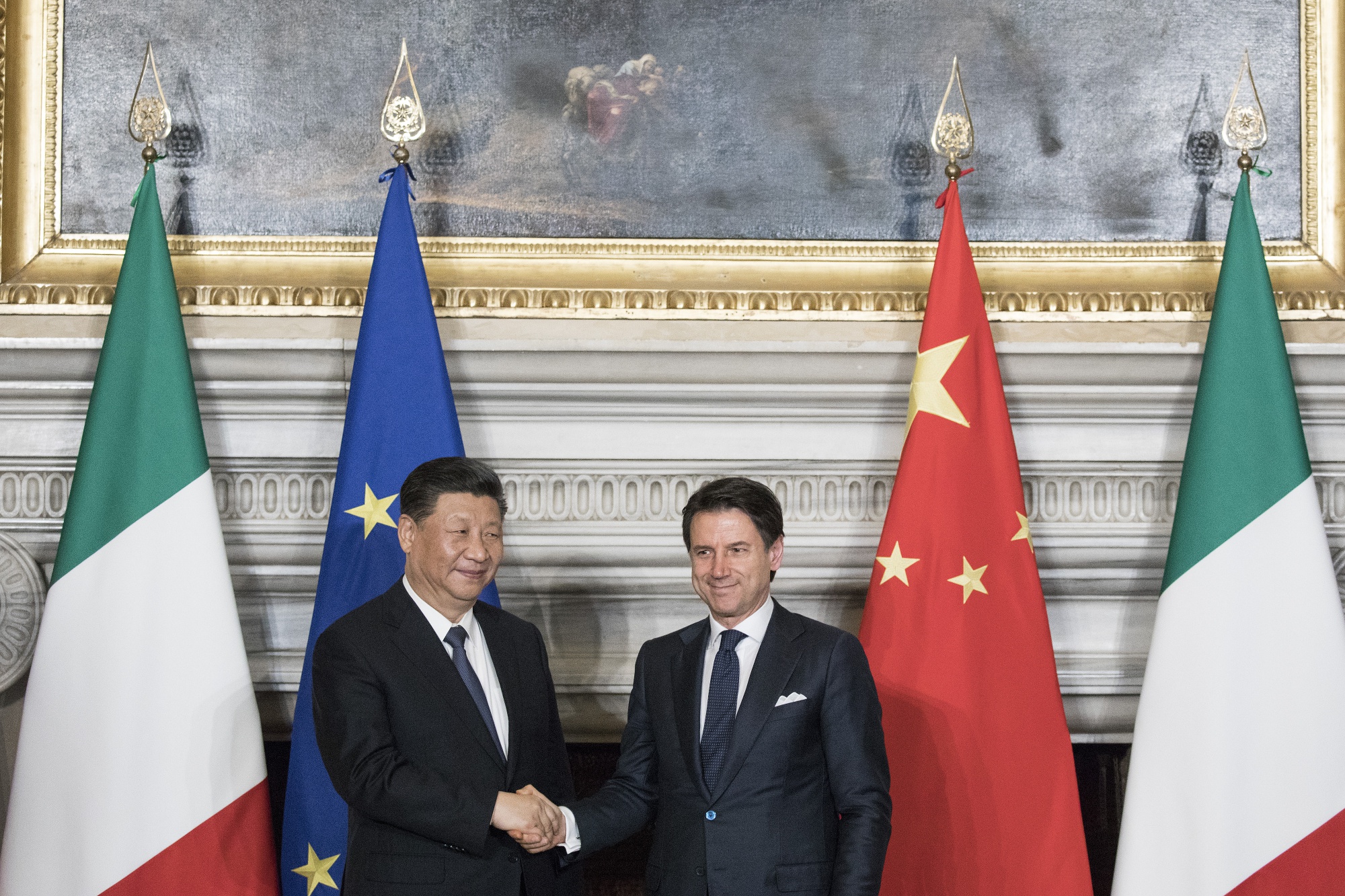 2019年3月23日,中国国家主席习近平(左)和意大利时任总理孔特在罗马签署了有关中国“一带一路”倡议的谅解备忘录。摄影师:Alessia Pierdomenico/彭博社放弃中国推出的基础设施建设和扩大影响力的计划——主要在亚洲、非洲和东欧地区,可能激怒北京。中国驻意大利大使贾贵在警告称,如果意大利“鲁莽决定”退出,将会带来“负面后果”。