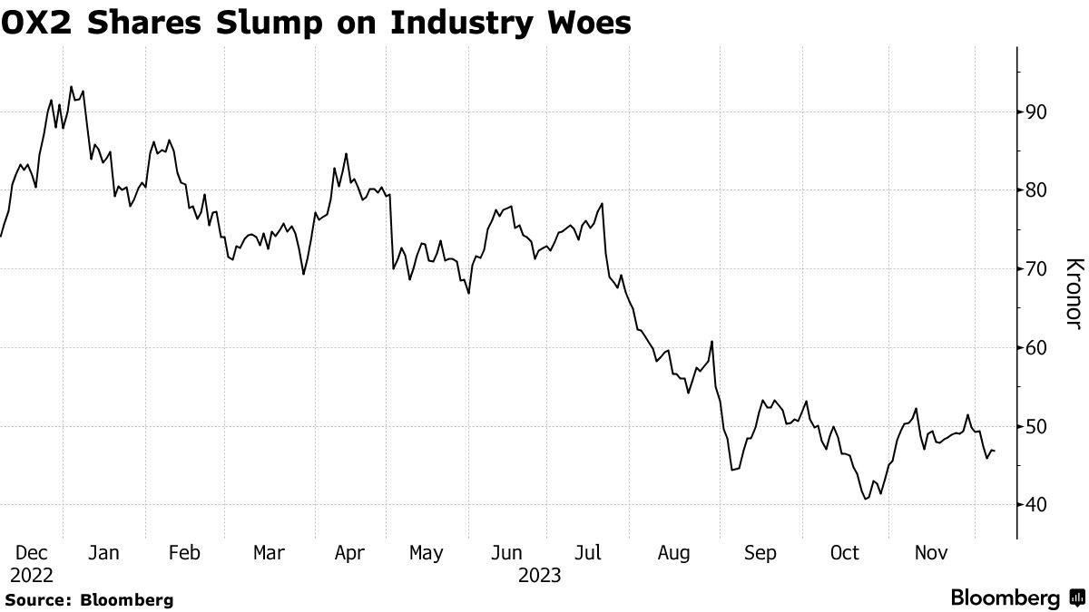 在英国和美国出现重大项目延迟和减记后,投资者对整个行业的信心受到打击。OX2今年市值几乎蒸发了一半,而在2022年增长了49%。
