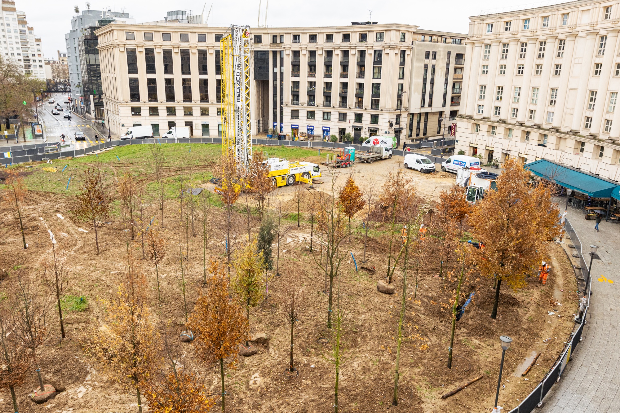 摄影师:Guillaume Bontemps/巴黎市覆盖巴黎高达一半面积的“城市森林”计划本周迈出了一大步,该市开始在繁忙的广场上种植478棵小树林。
