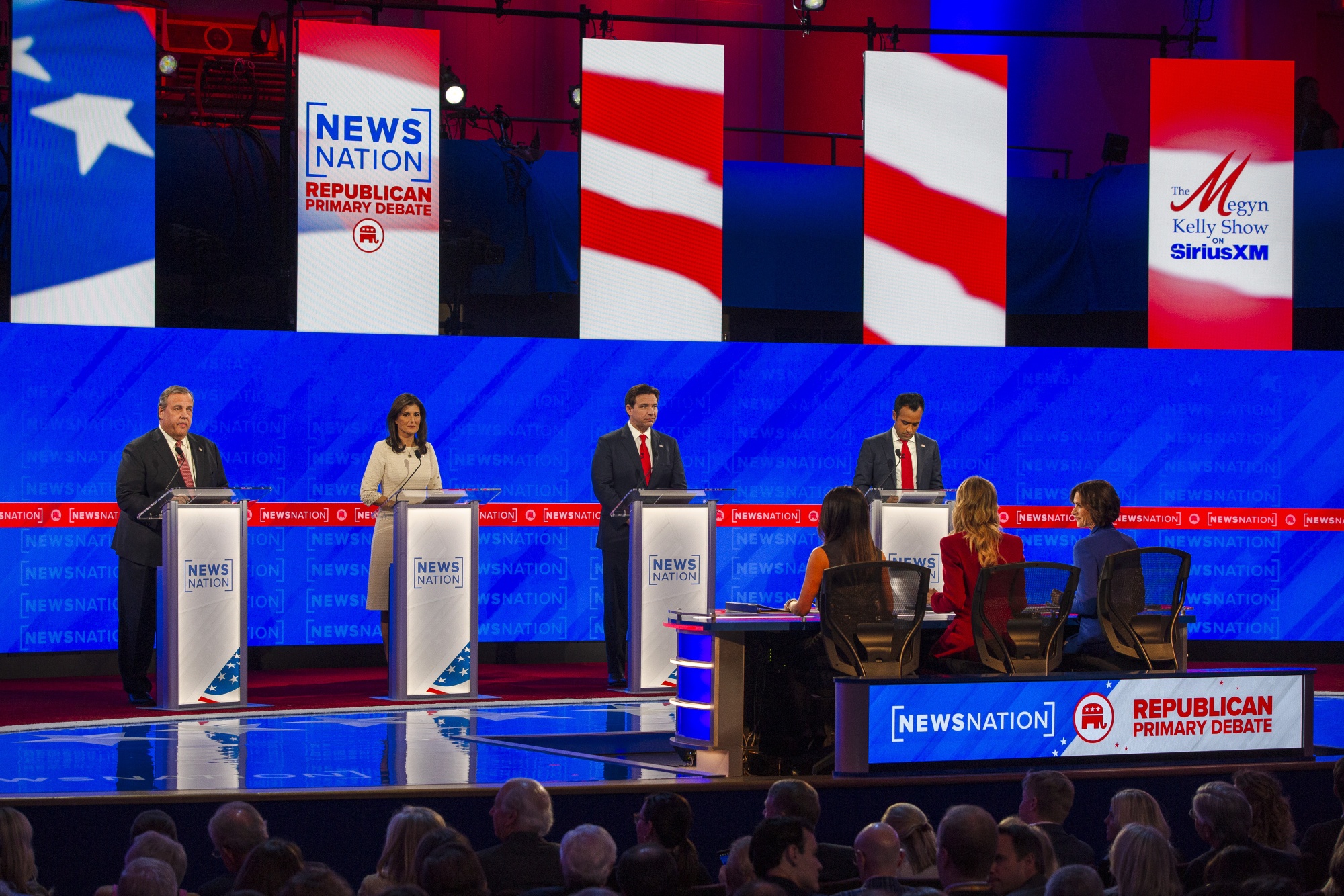 四名候选人参加了周三在阿拉巴马州图斯卡卢萨举行的正式辩论:佛罗里达州州长罗恩·德桑特斯、前联合国大使妮基·黑利、前新泽西州州长克里斯·克里斯蒂和俄亥俄州企业家维韦克·拉马斯瓦米。