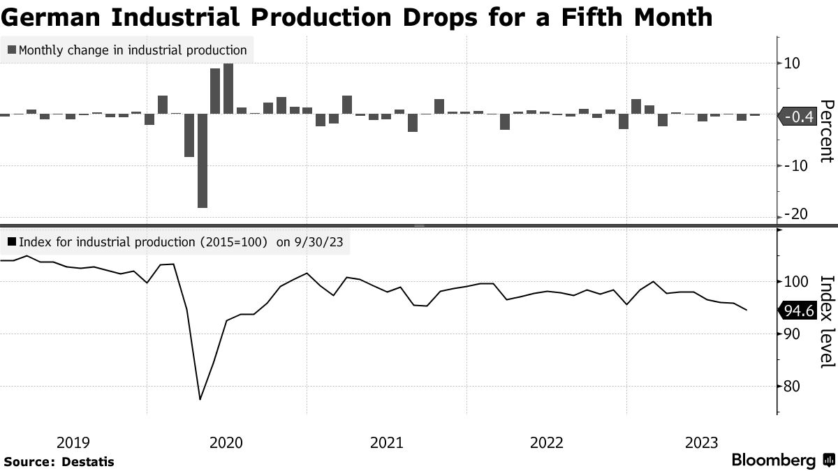 德国和意大利的工业生产在第四季度开始时出现了一些问题,之前法国和西班牙也报告了类似的情况,这表明该地区可能出现了衰退*。欧洲最大经济体德国的产出在10月份较上月下降了0.4%,降至自2020年8月以来的最低水平。*