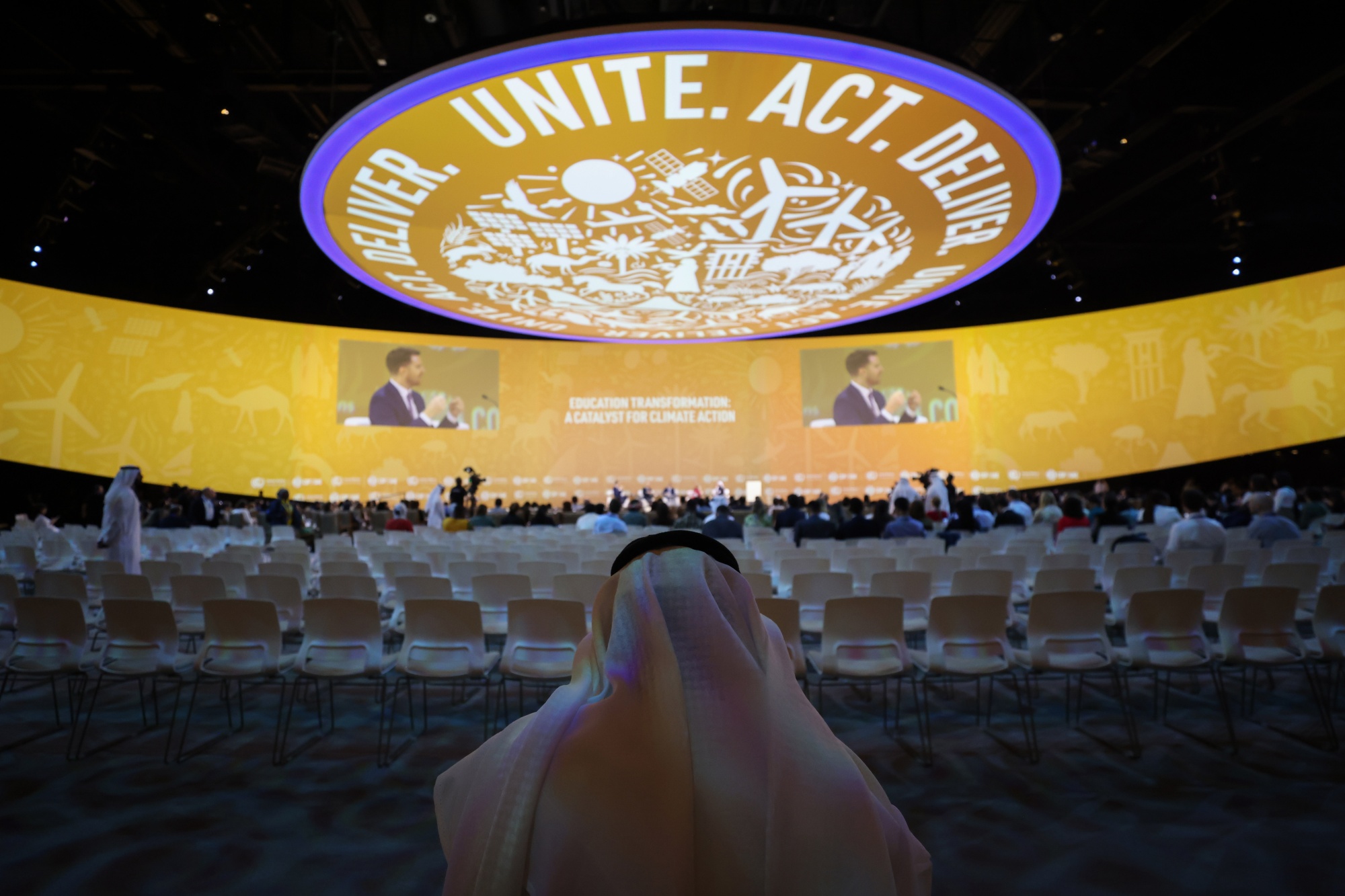 中国的资深特使谢振华昨天与美国团队进行了广泛的会谈,希望将化石燃料的减少与可再生能源的增长联系起来。为了打破僵局,阿尔贾贝尔召集了一种不同类型的会议:马吉利斯,一种阿拉伯风格的会议,在这种会议中,参与者坐在一圈内,并被鼓励自由发言。