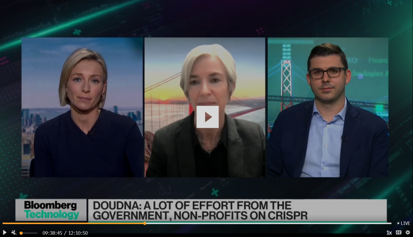 观看Bloomberg Technology的采访,采访对象是Crispr的共同发明者、2020年诺贝尔奖获得者Jennifer Doudna。### 充分充电