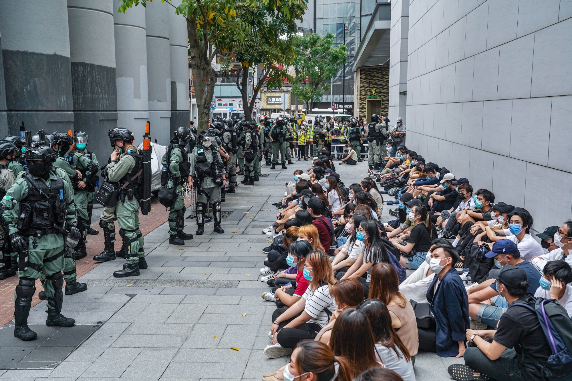 2020年香港抗议活动中被防暴警察拘留的示威者。摄影师:Lam Yik/Bloomberg周表示,尽管她已经出狱,但在香港过上正常生活已经不可能。