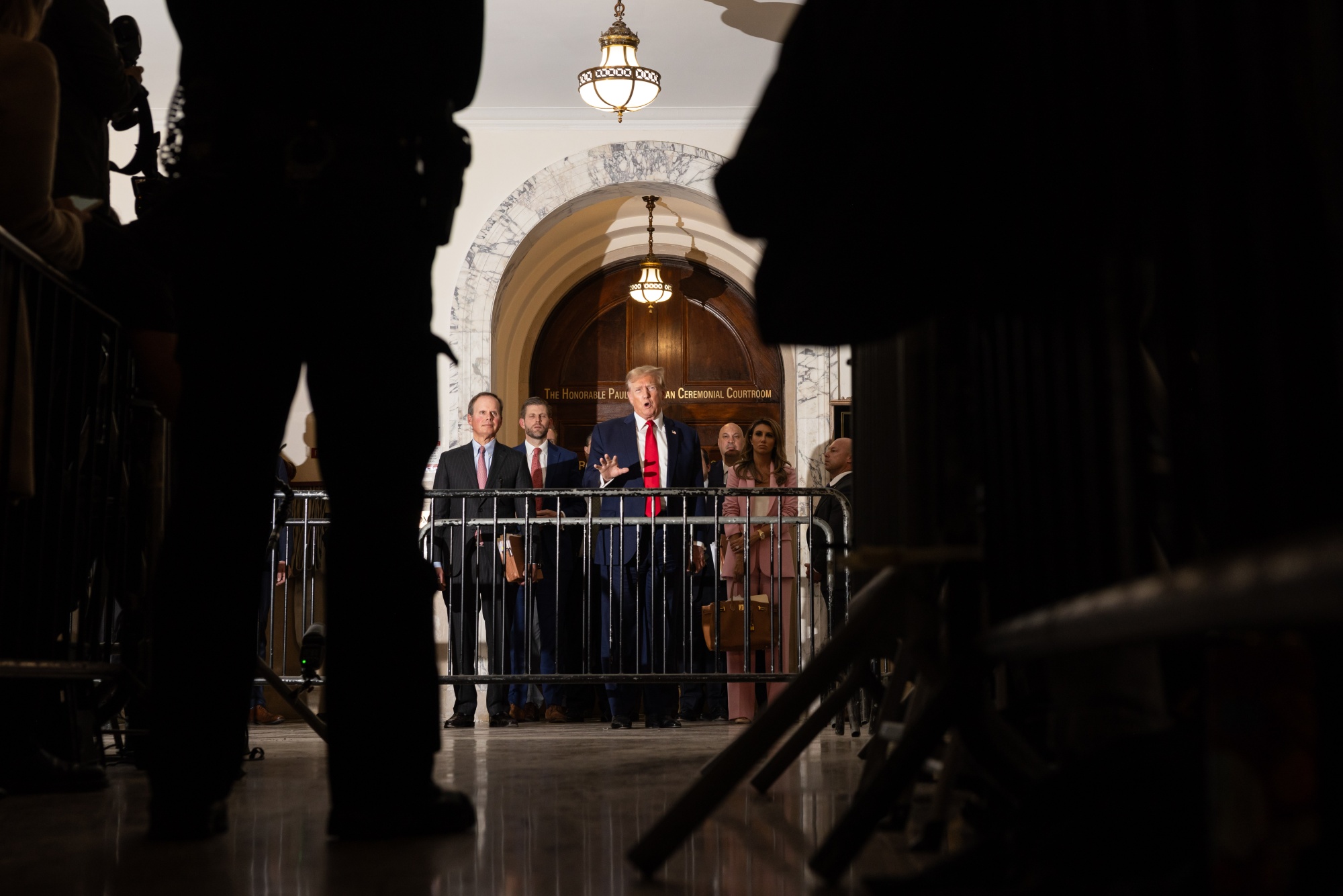美国前总统唐纳德·特朗普在纽约州最高法院对媒体发表讲话。摄影师:Yuki Iwamura/Bloomberg高盛资产管理部门正在重新调整其价值1100亿美元的私人信贷部门的高级管理人员,因为它寻求在中期内将业务规模翻倍。