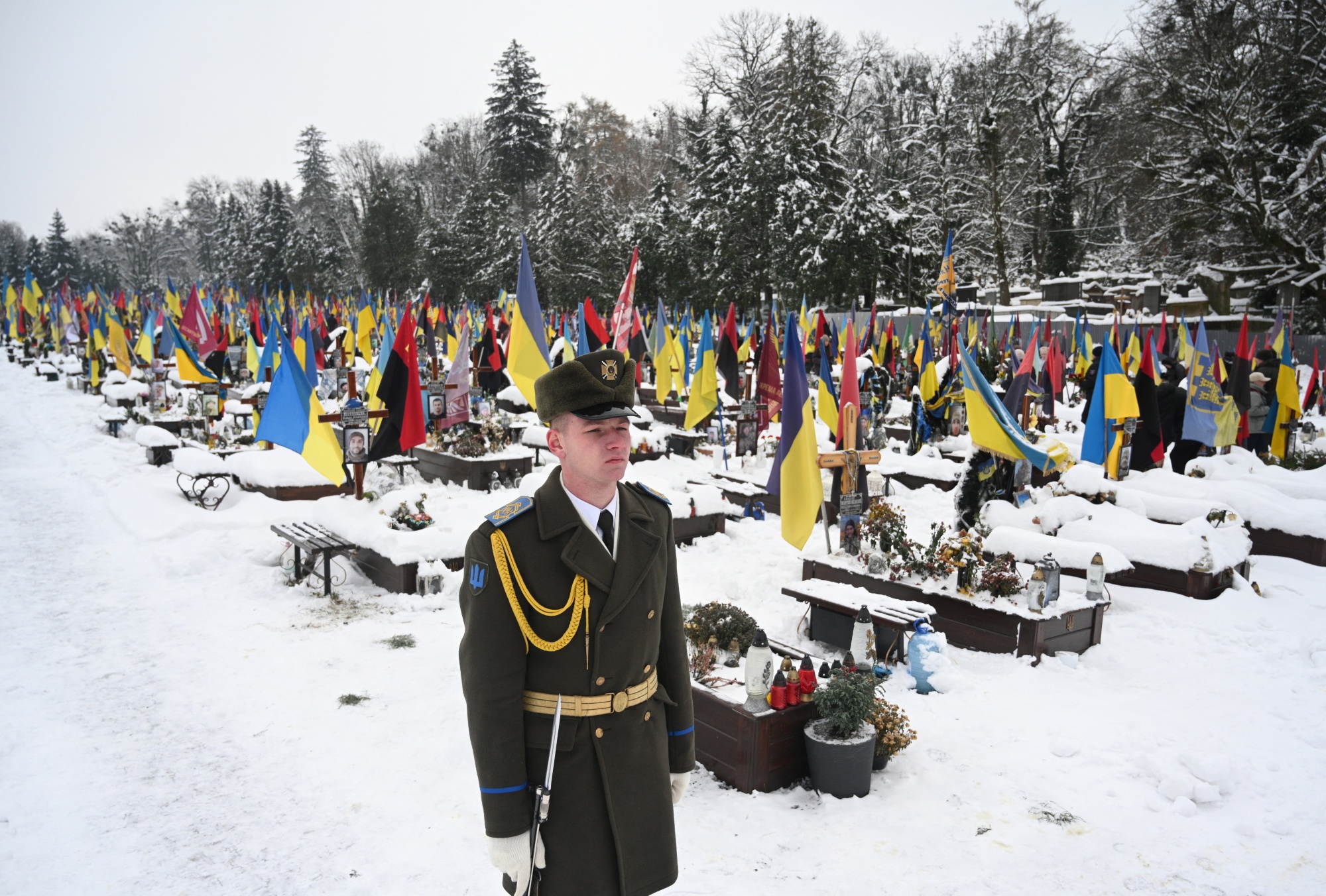乌克兰利沙基夫公墓的乌克兰士兵墓前的仪仗队,拍摄于乌克兰利沙基夫,12月6日。