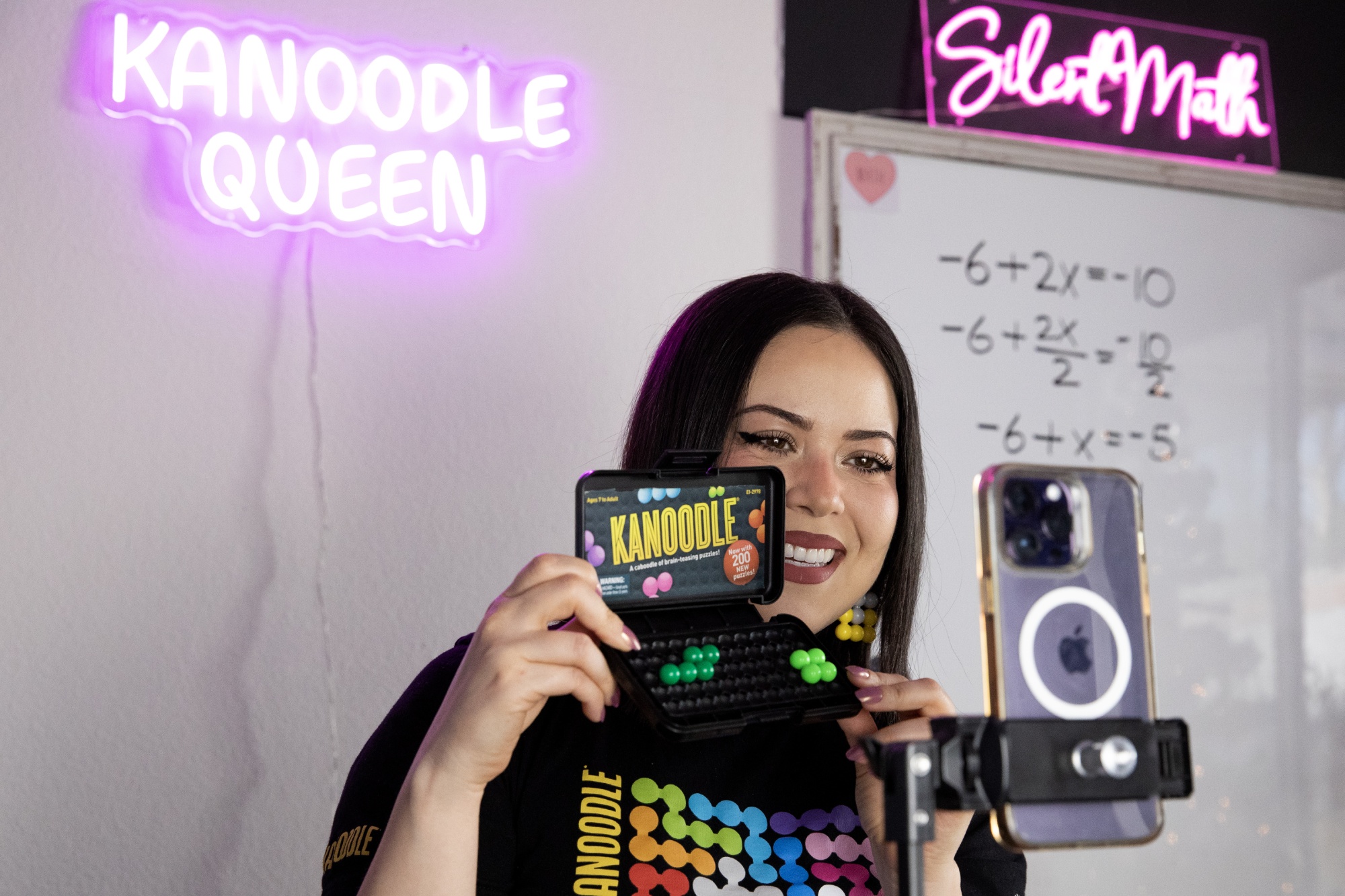 Educational Insights表示,一位名为Kanoodle Queen的网红帮助他们与购物者建立了联系。在现实生活中,她是30岁的数学家Arlene Resendiz,在疫情封锁期间开始在Instagram上教学。在那里积累了7万名粉丝后,她转到了TikTok,使用“silentmath”这个账号,观众数量激增至160万名粉丝。Resendiz现在直播自己玩Kanoodle,并从与她的推广相关的销售中赚取佣金。“很多人以前没见过这个游戏,所以很好奇,”她说。“我会请观众帮我,比如我应该用哪种颜色的块。我帮助了Kanoodle变得流行起来。”