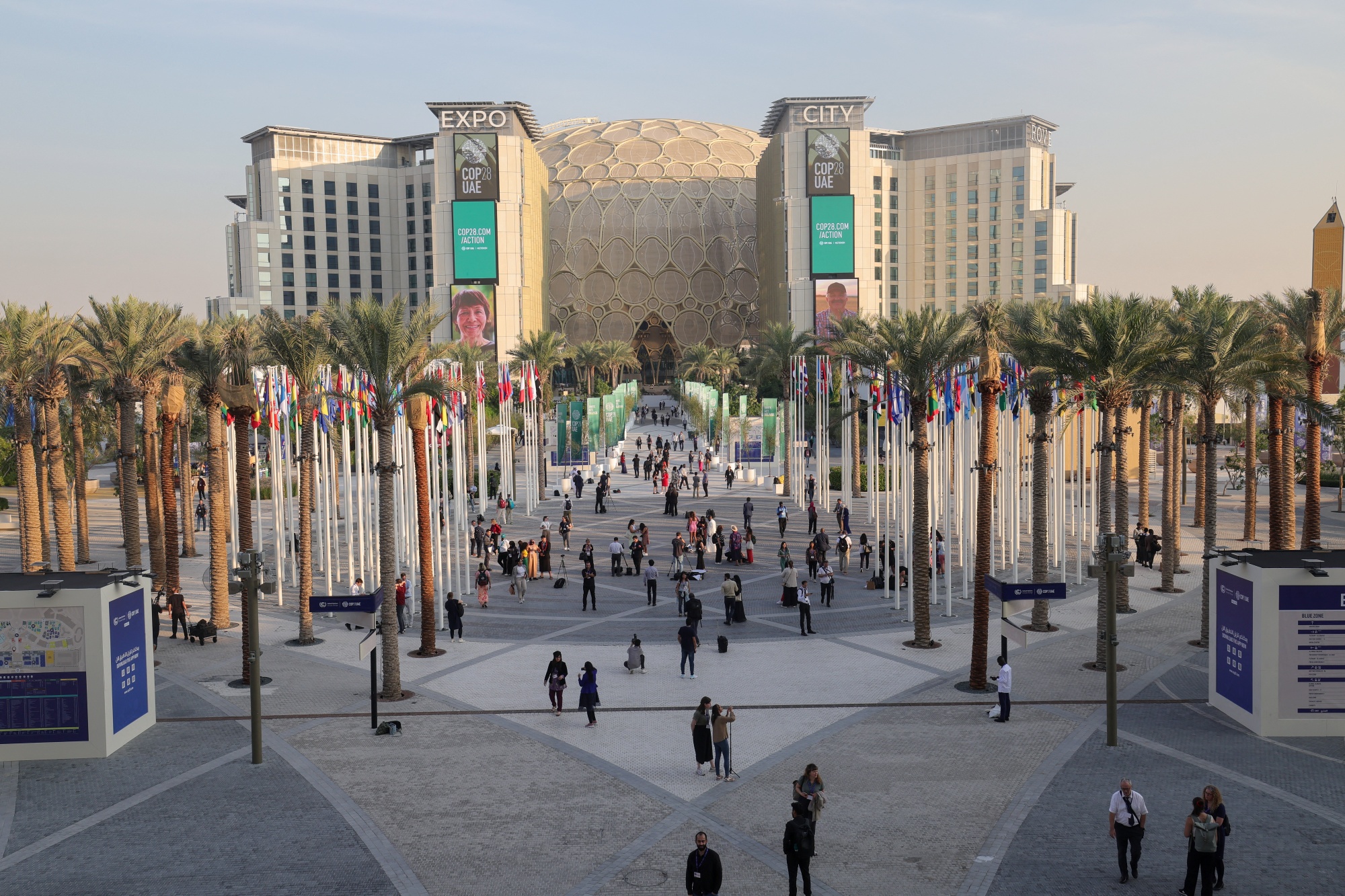 博览城在迪拜举办的COP28期间,摄于12月12日。摄影师:Giuseppe Cacace/AFP/Getty Images任何对峙可能会发生在预定于上午10点举行的部长全体会议上 —— 开始时间可能会延迟。在那里,任何反对者都将最后一搏,通过要求对文本进行最后一刻的修订来让他们的声音被听到。