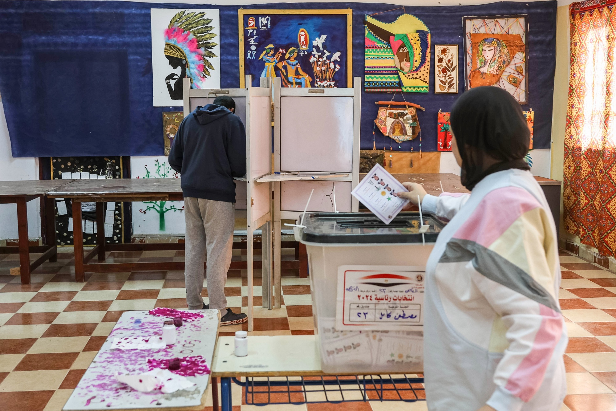 一名选民在埃及开罗的一个投票站投票,日期为12月12日。