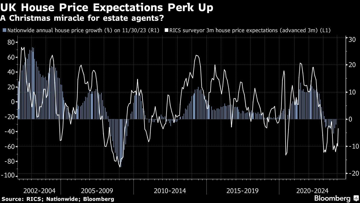 与此同时,随着抵押贷款成本已经在下降(下面“当日图表”中有更多信息),不仅可能会刺激房地产市场活动,而且任何在2024年为再融资而焦虑的人也不会面临那么严重的付款冲击。这仍然会有所增加,但不会像他们担心的那样糟糕。反过来,这对消费前景非常有利,这对英国整体经济前景非常有利。