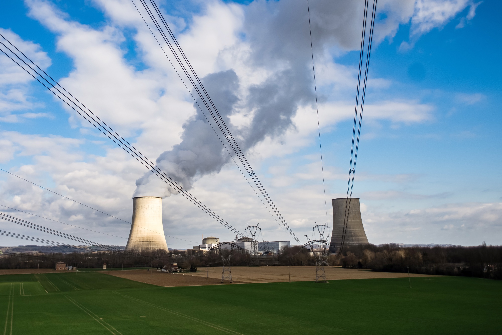 蒸汽从法国戈尔费什核电站的冷却塔上升起。