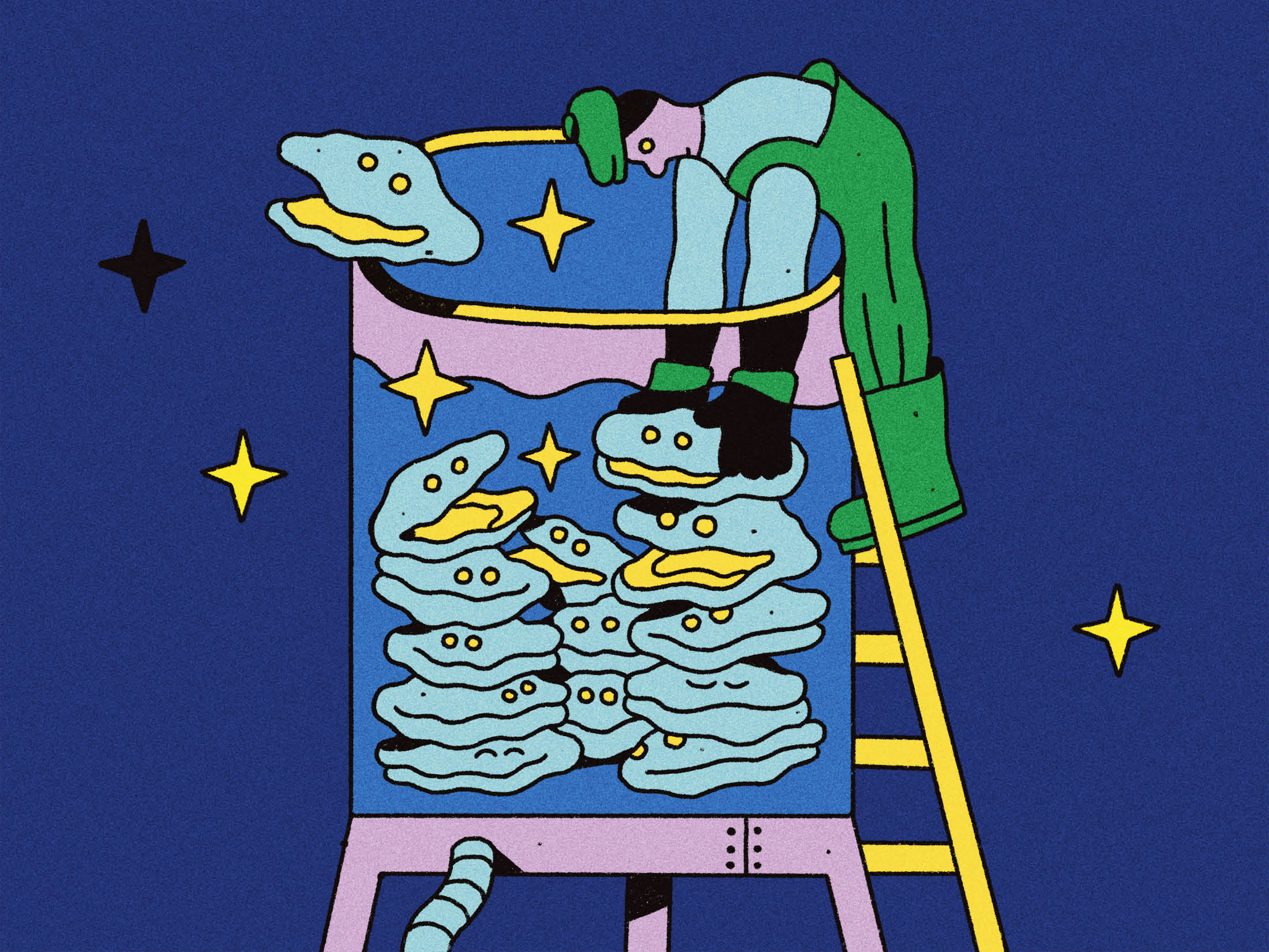 插图:彭博商业周刊的Philip Lindeman2006年,当吉田秀典正在扩张他的生蚝酒吧连锁店时,一场诺如病毒爆发导致日本各地数万人被送往医院。尽管他的餐厅与任何病例都没有关联,但吉田的销售额暴跌。但他没有放弃这种贝类,而是加倍努力,自己养殖牡蛎,以确保所供应的食物安全。