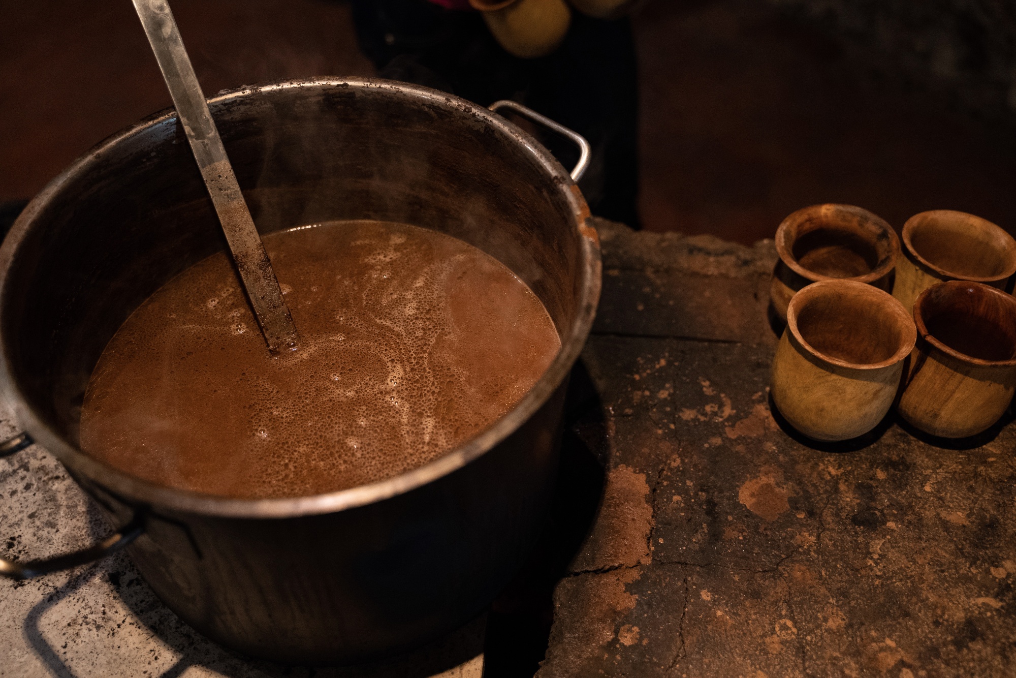 热巧克力从墨西哥圣埃莱娜的乌斯马尔巧克力故事博物馆的壶中升起,2020年。