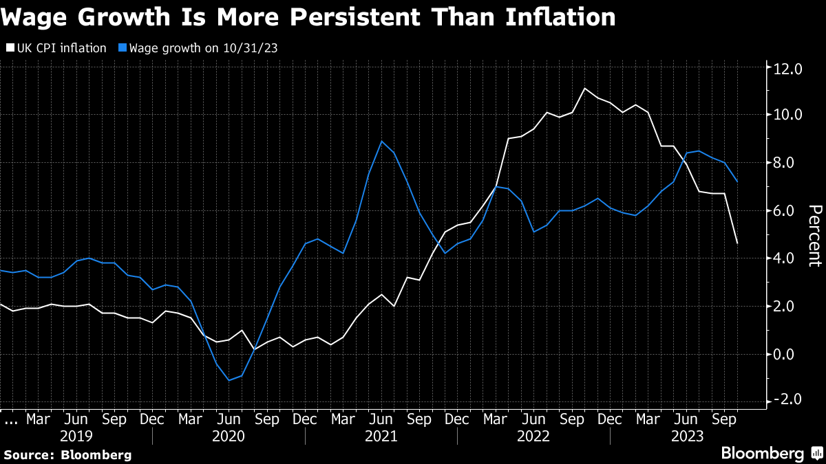 下周通胀数据很可能成为焦点。经济学家预计,11月价格上涨的速度已经从上个月的4.6%放缓到了4.4%。更陡的下降将使英国央行行长安德鲁·贝利更难重复他那句“现在就开始猜测降息还为时过早”的老生常谈。