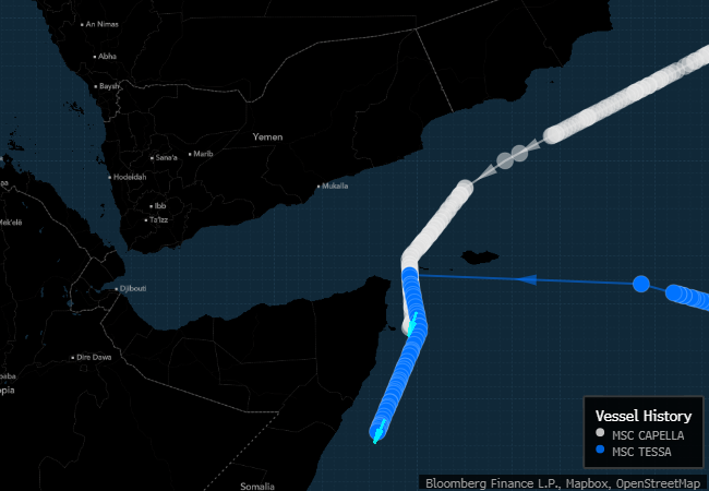 地中海航运公司MSC,全球最大的集装箱航运公司,加入了竞争对手的行列,将船只从红海转移。