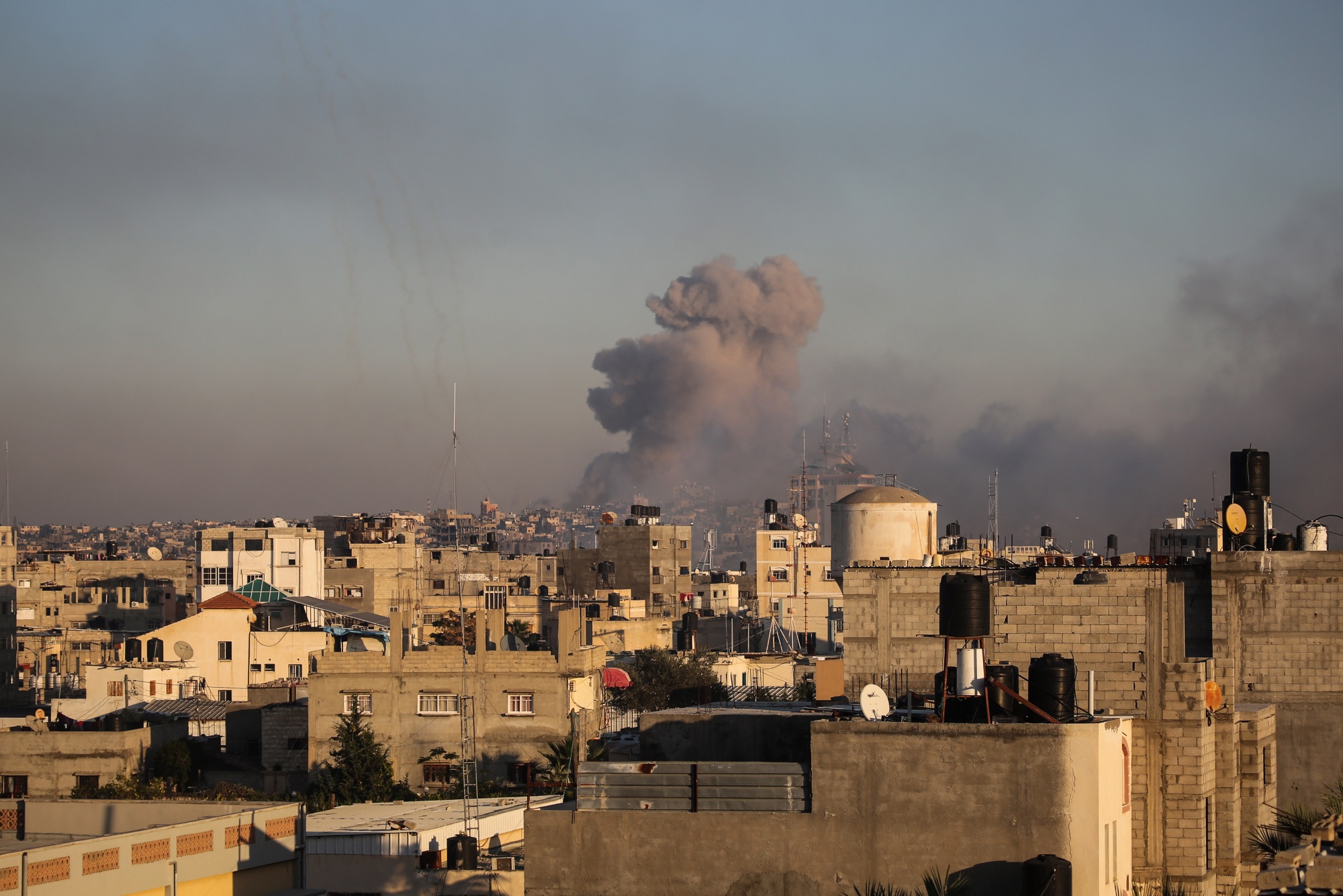 以色列空袭加沙的烟雾升起。
