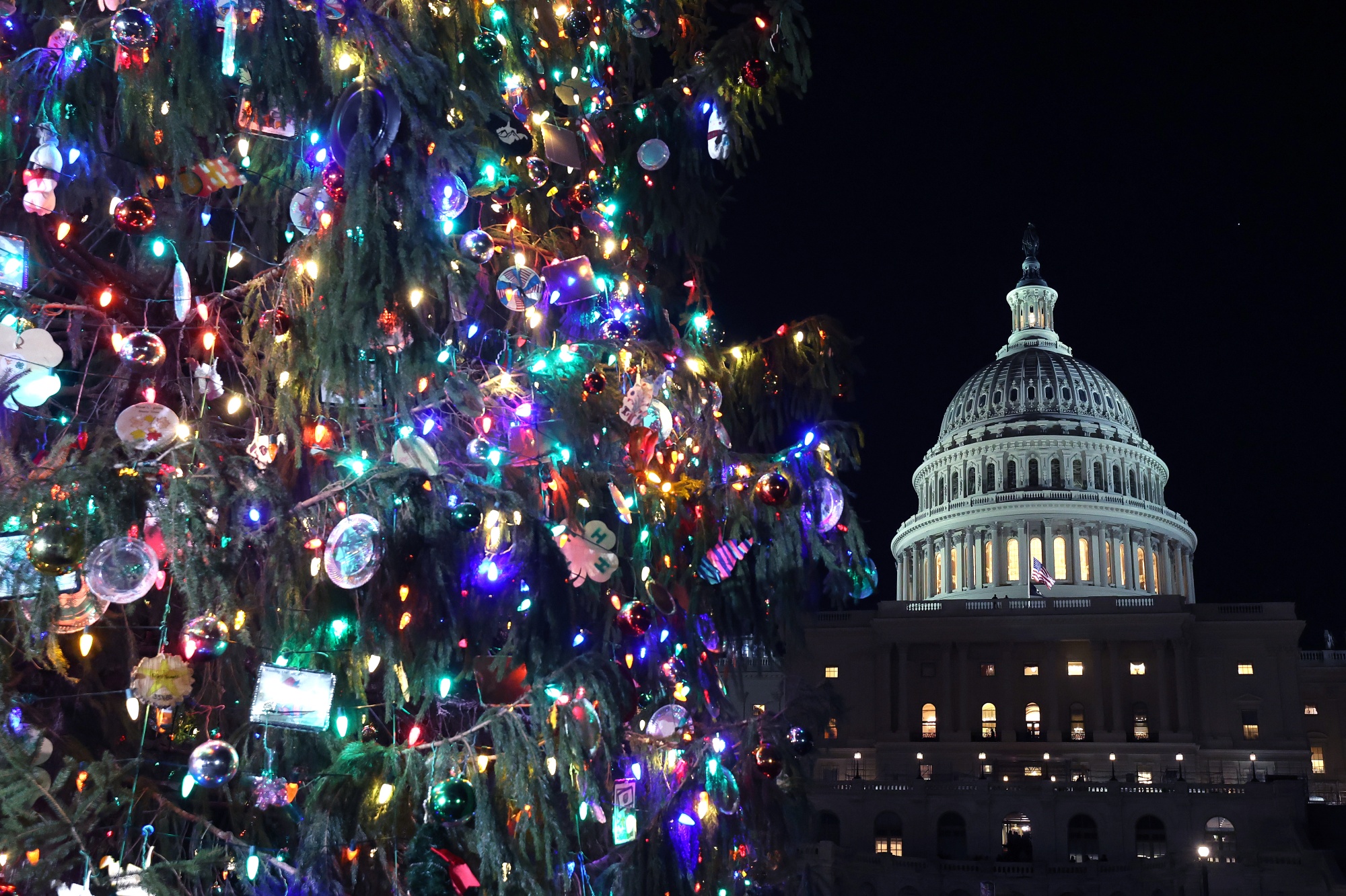 2023年11月28日,美国华盛顿特区的国会大厦圣诞树。
