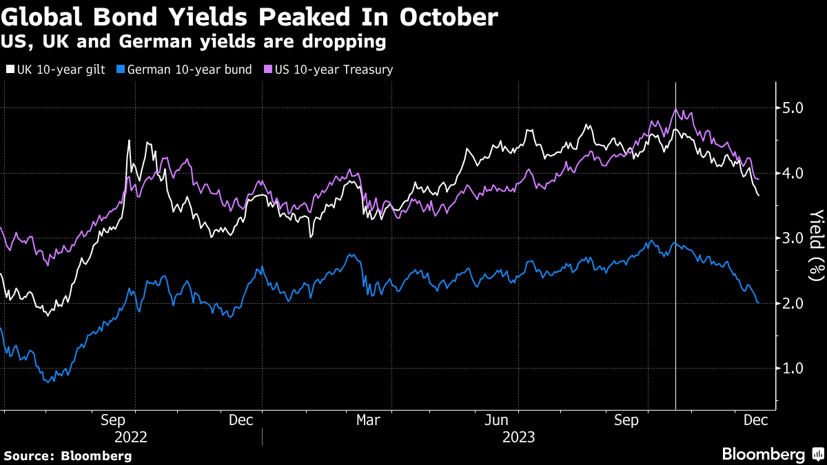 美元走弱通常对资产价格有利,这正是我们在过去几天看到的情况。一个更大的问题可能是这种情况在2024年是否能持续。