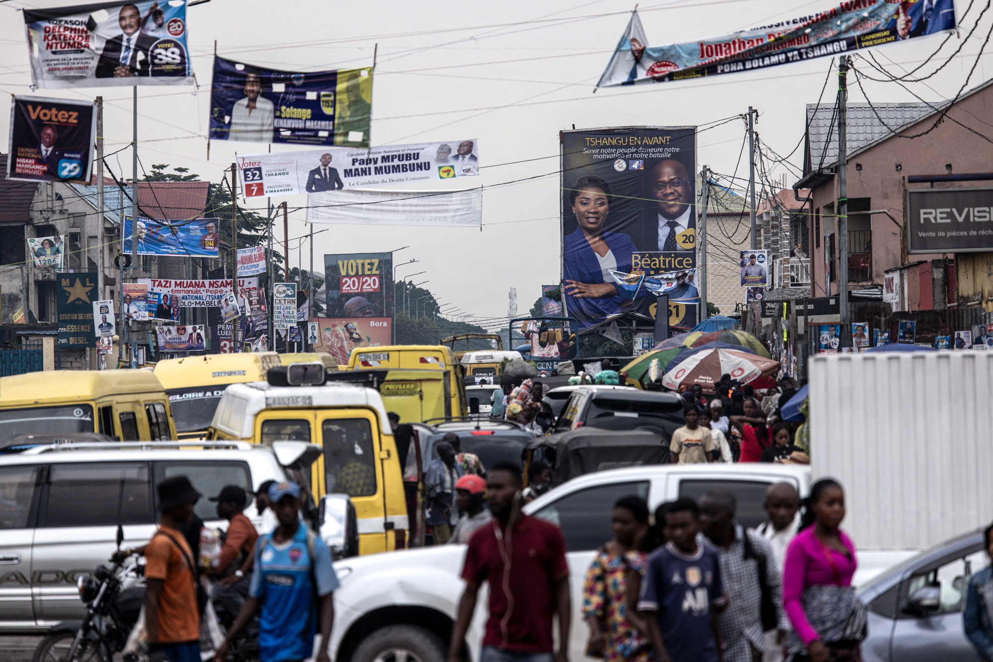 金沙萨的选举竞选横幅,刚果民主共和国。