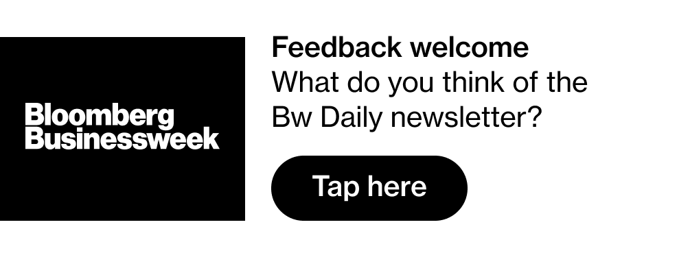 欢迎来到Bw Daily,这是Bloomberg Businessweek的新闻简报,我们将在每个工作日为您带来有趣的声音、优秀的报道和杂志的魅力。通过给我们的编辑发送电子邮件来告诉我们您的想法。 如果这封邮件是转发给您的,点击这里注册。