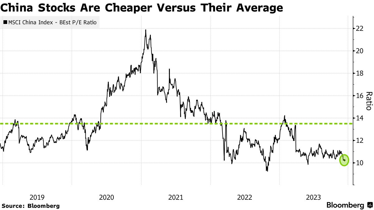 根据彭博编制的数据,该指数以其未来12个月的盈利为基础交易,交易价格为10.2倍,低于其13.5倍的五年平均值。