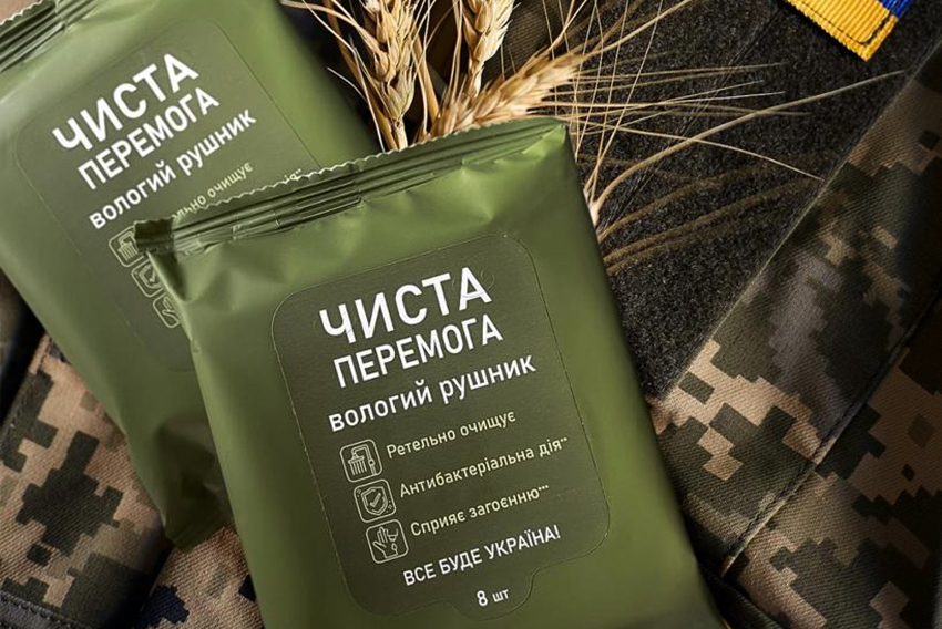 然后,就像整个国家一样,去年2月俄罗斯入侵后,生活发生了翻天覆地的变化。销售额下降了30%。Biosphere需要填补乌克兰人民参战时的空缺。结果就是:一种适合战壕中士兵使用的卡其绿色信封湿巾。