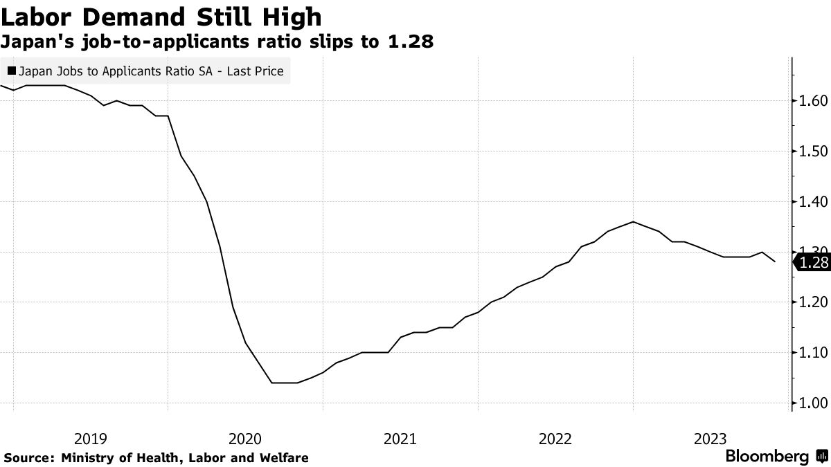 尽管自疫情大流行高峰以来,日本的劳动条件已经有所放松,但该国的失业率仍然是经济合作与发展组织成员国中最低的。至于劳动需求,自疫情大流行结束以来,职位供求比急剧下降,但近期有所回升。经济学家表示,这一趋势表明一些工人正自愿辞职以寻求更好的机会,因为越来越多的公司提高工资。