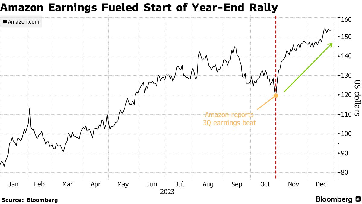 自10月以来,亚马逊的股价上涨了约80%。AWS云业务的增长稳定有助于推动股价。