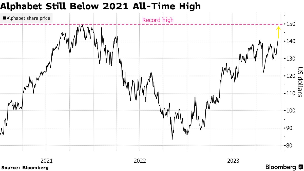 谷歌母公司Alphabet今年股价上涨了60%,目前可能是微软在人工智能和云产品方面最大的竞争对手。