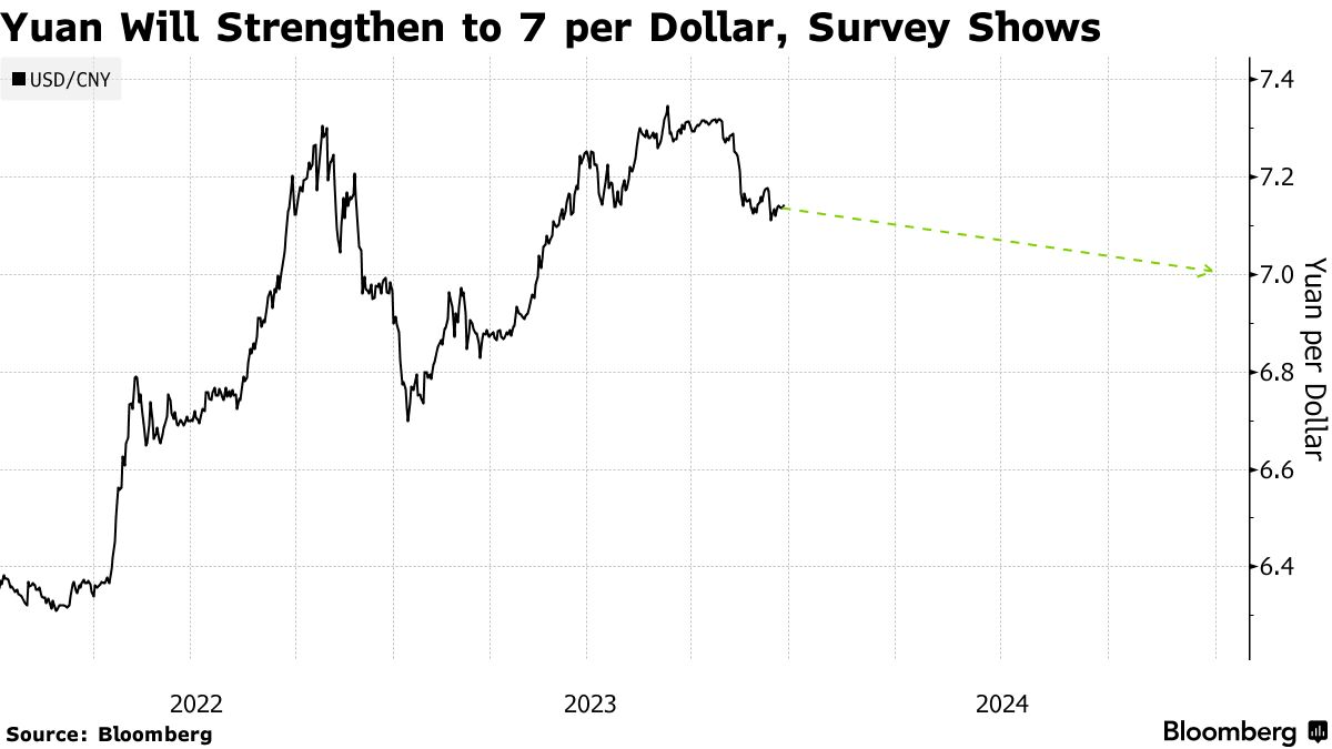 中国的人民币将在2024年首次在三年内升值,因为利率差距的缩小将减轻资本外流,彭博社的一项调查显示。