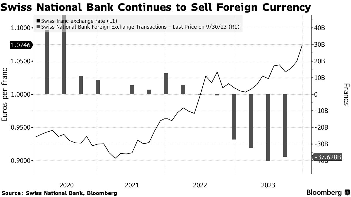 通过出售外汇储备并购买本国货币,瑞士国家银行支撑汇率,同时减少其庞大的资产负债表。自去年以来,该机构一直在利用这一手段来保护瑞士免受全球通货膨胀的冲击。