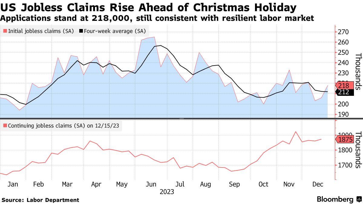 美国失业救济初始申请在圣诞节前一周增加,但仍保持与弹性劳动力市场一致的水平。