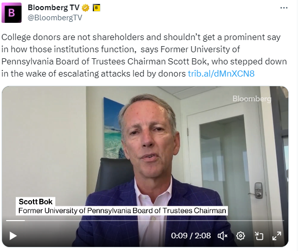 加沙战争在全球范围内引发强烈反应,包括在UPenn、哈佛和麻省理工等美国顶尖大学。格林希尔的斯科特·博克表示,学术界正在应对一场“危机”,他在去年秋天担任UPenn董事会主席期间卷入了这场辩论。阿波罗公司CEO马克·罗温,作为UPenn的主要捐赠者,指责博克和UPenn的前任校长丽兹·马吉尔容忍反犹主义,并呼吁他们辞职。最终,博克决定辞职,因为UPenn的董事会已经分裂,他认为自己可以“从外部更多地为辩论做出贡献”,他说。